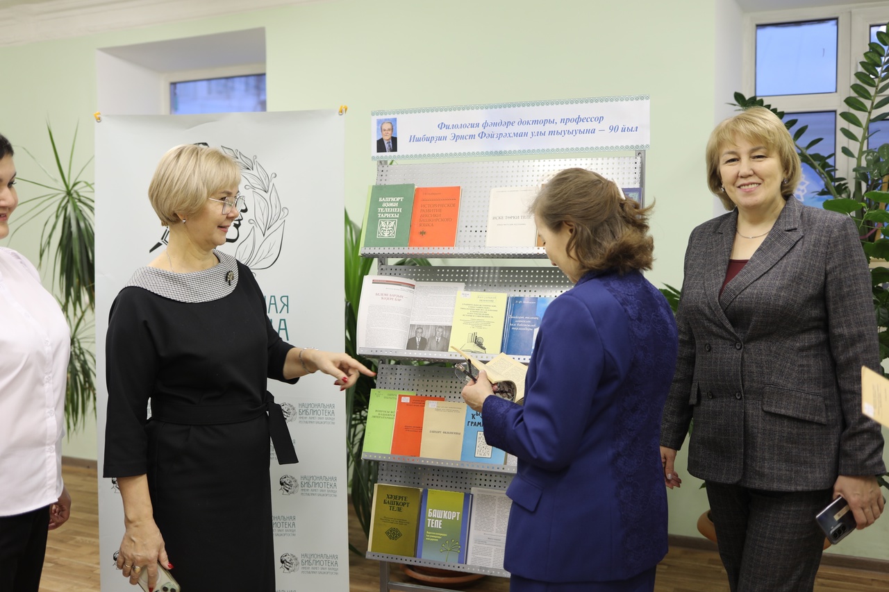 В рамках круглого стола Национальная библиотека Башкортостана имени Заки Валиди организовала выставку, посвященную научно-методическим трудам доктора филологических наук, профессора Эрнста Ишбердина. Экспозиция включала в себя его ключевые учебники, такие как «Башкирский язык», «Историческое развитие лексики башкирского языка», «Старотюркский язык», «Очерки истории башкирского литературного языка» и «Современный башкирский язык». Эти работы стали основополагающими для многих поколений студентов и преподавателей. Также на выставке были представлены статьи об Эрнсте Ишбердине, опубликованные в республиканских изданиях на протяжении многих лет, что позволяло посетителям получить более полное представление о его научной деятельности и влиянии на культуру и науку республики.