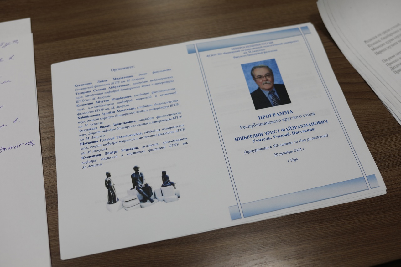 20 декабря на факультете башкирской филологии прошел Республиканский круглый стол, посвященный выдающемуся деятелю науки и образования, Ишбердину Эрнсту Файзрахмановичу, который не только оставил заметный след в области филологии, но и стал настоящим наставником для многих студентов и коллег. Название мероприятия — «Ишбердин Эрнст Файзрахманович. Учитель. Ученый. Наставник» — отражало многогранность его личности и значимость его вклада в развитие башкирского языка и литературы.