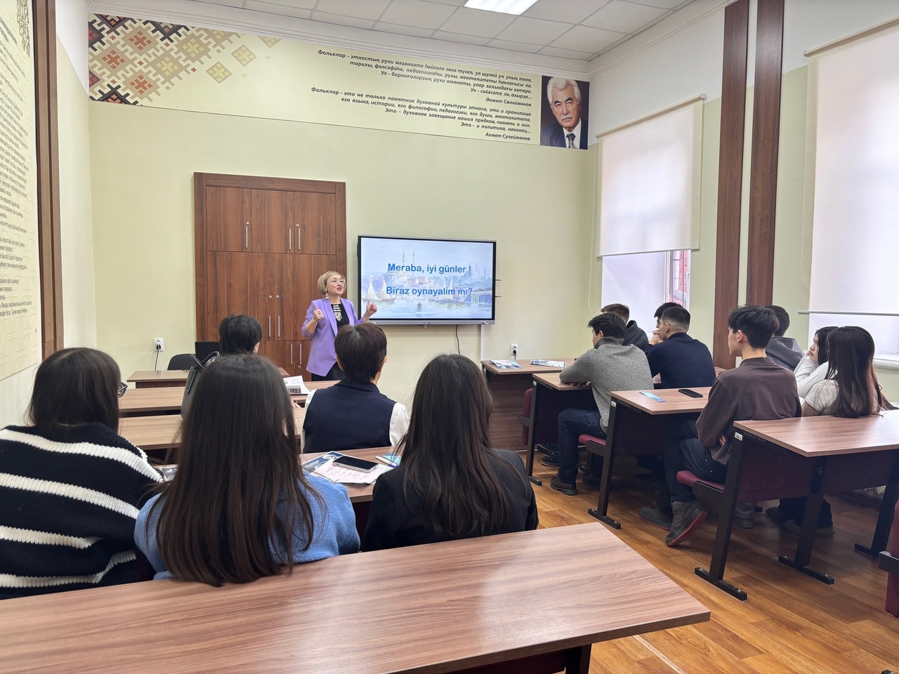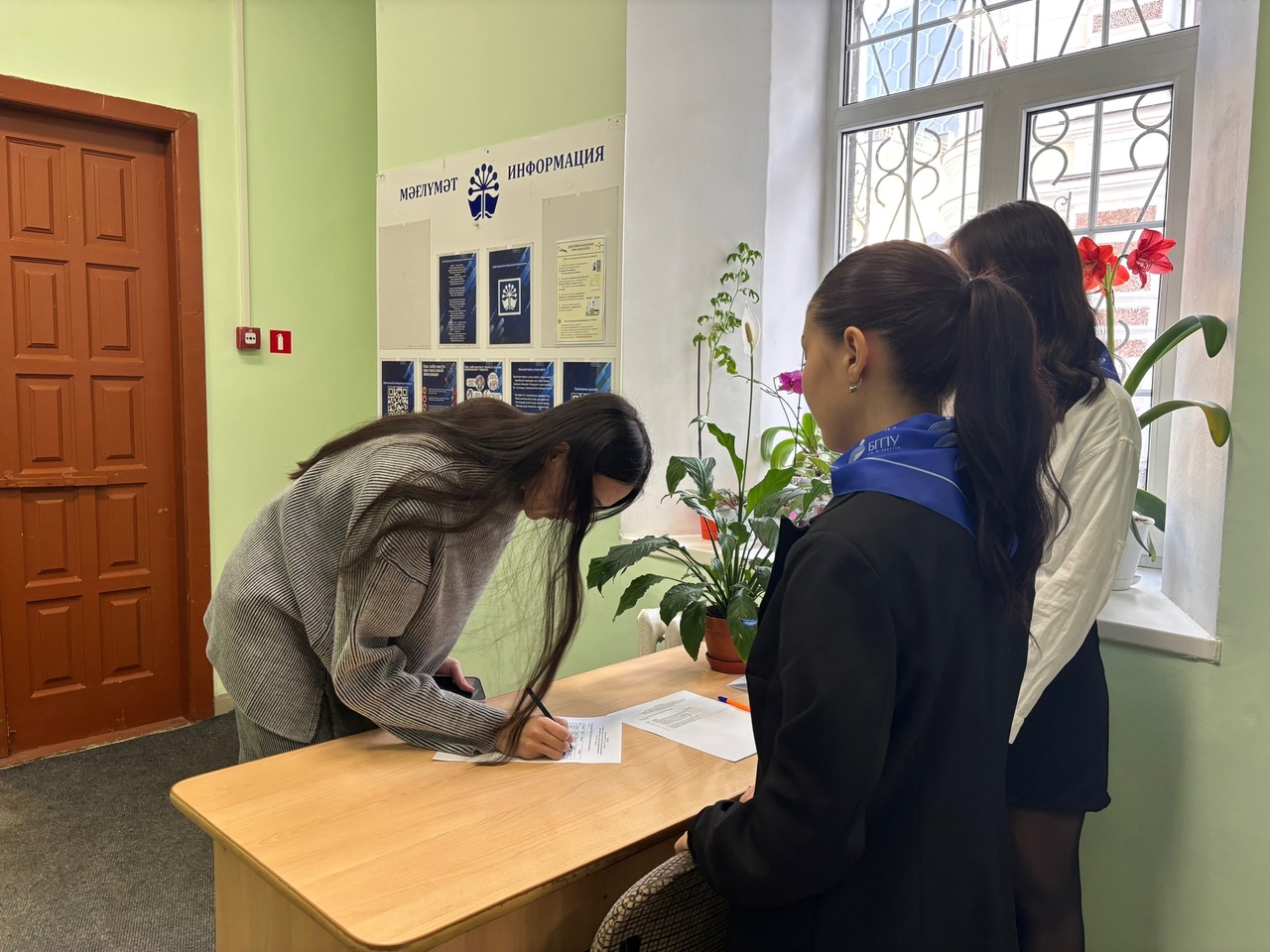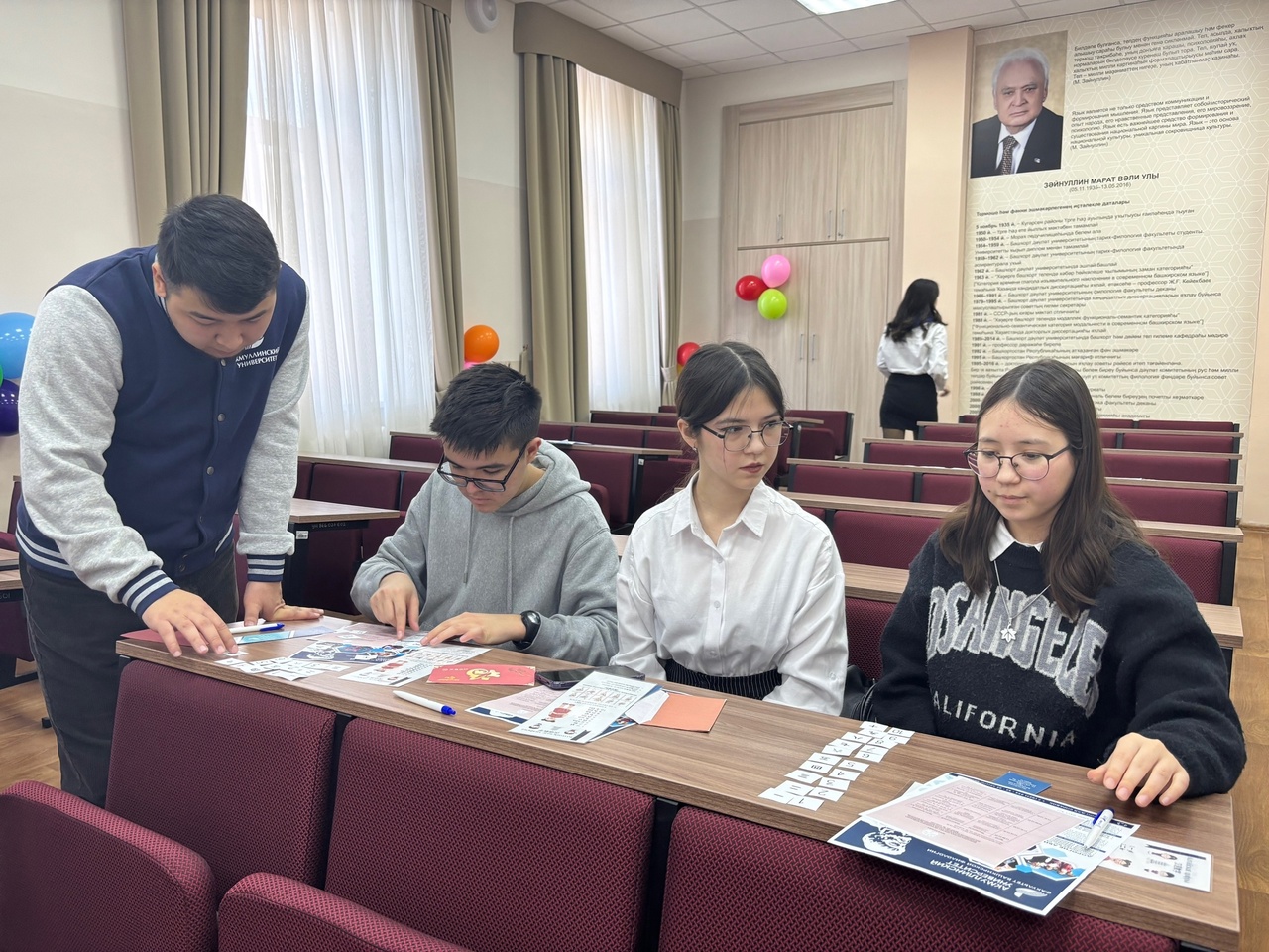 При входе гости зарегистрировались и получили буклеты о факультете, что дало им возможность узнать больше о направлениях и специализациях, предлагаемых здесь. Далее студенты-активисты во главе с преподавателями провели увлекательную экскурсию, во время которой школьники смогли ознакомиться с именными аудиториями, каждая из которых несет свою уникальную историю и значение. В рамках экскурсии и профориентационной работы также заведующий кафедрой тюркской и восточной филологии, кандидат филологических наук Куланчин Айтуган Юмабаевич, подробно рассказал о масштабных работах, проводимых на факультете по разработке новых методов обучения восточным языкам. Он отметил наличие перспектив для изучения различных иностранных языков на базе факультета, а также возможности дальнейшего развития в лингвистической сфере.