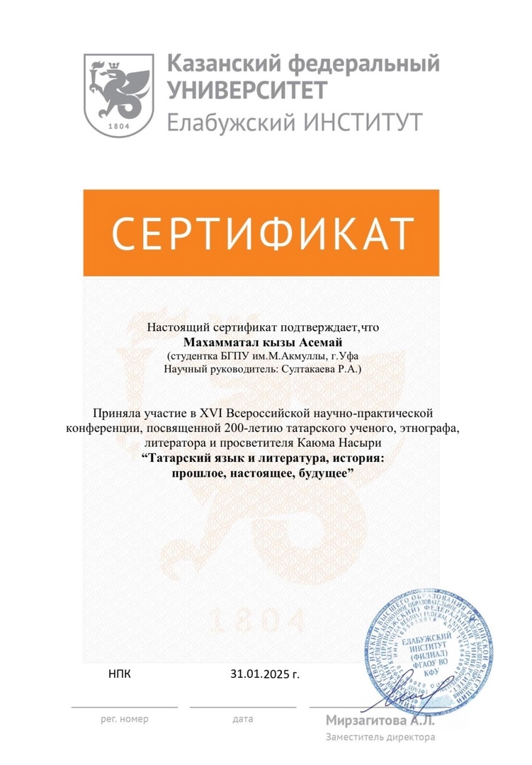 31 января в Елабужском институте Казанского Федерального Университета прошла XVI Всероссийская научно-практическая конференция, посвященная 200-летию со дня рождения ученого-просветителя Каюма Насыри, «Татарский язык и литература, история: прошлое, настоящее, будущее», в которой приняли активное участие студенты факультета башкирской филологии!