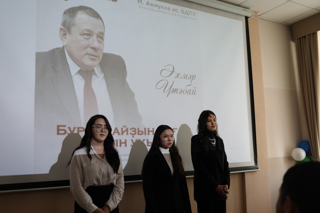 На мероприятии также выступили студенты третьего курса – Рахмангулов Камил, Салимов Динислам, Идельбеков Эльвир, Нурисламов Ильдар и Кутлугалямов Рушан. Они выразительно прочитали отрывок из произведения "Мин - Буранбай" (вторая глава). Их выступление никого не оставило равнодушным.