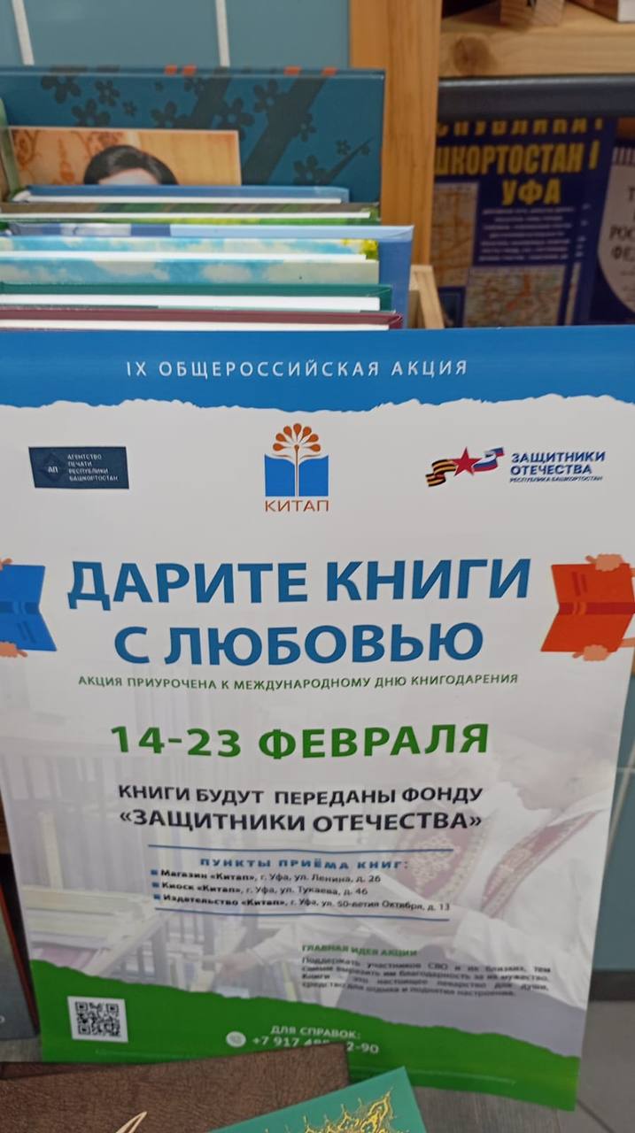 В этом году, сохраняя добрую традицию, издательство «Китап» им. З. Биишевой совместно с филиалом фонда «Защитники Отечества» в Республике Башкортостан и Агентством по печати и СМИ РБ запустили акцию «Дарите книги с любовью», которая будет проходить с 14 по 23 февраля. Эта акция направлена на поддержку наших защитников – тех, кто стоит на страже нашей Родины в такое непростое время. Мы выражаем им свою благодарность за мужество и героизм, и идеи о том, что книги могут стать настоящим лекарством для души, вдохновляя и утешая в трудные моменты.