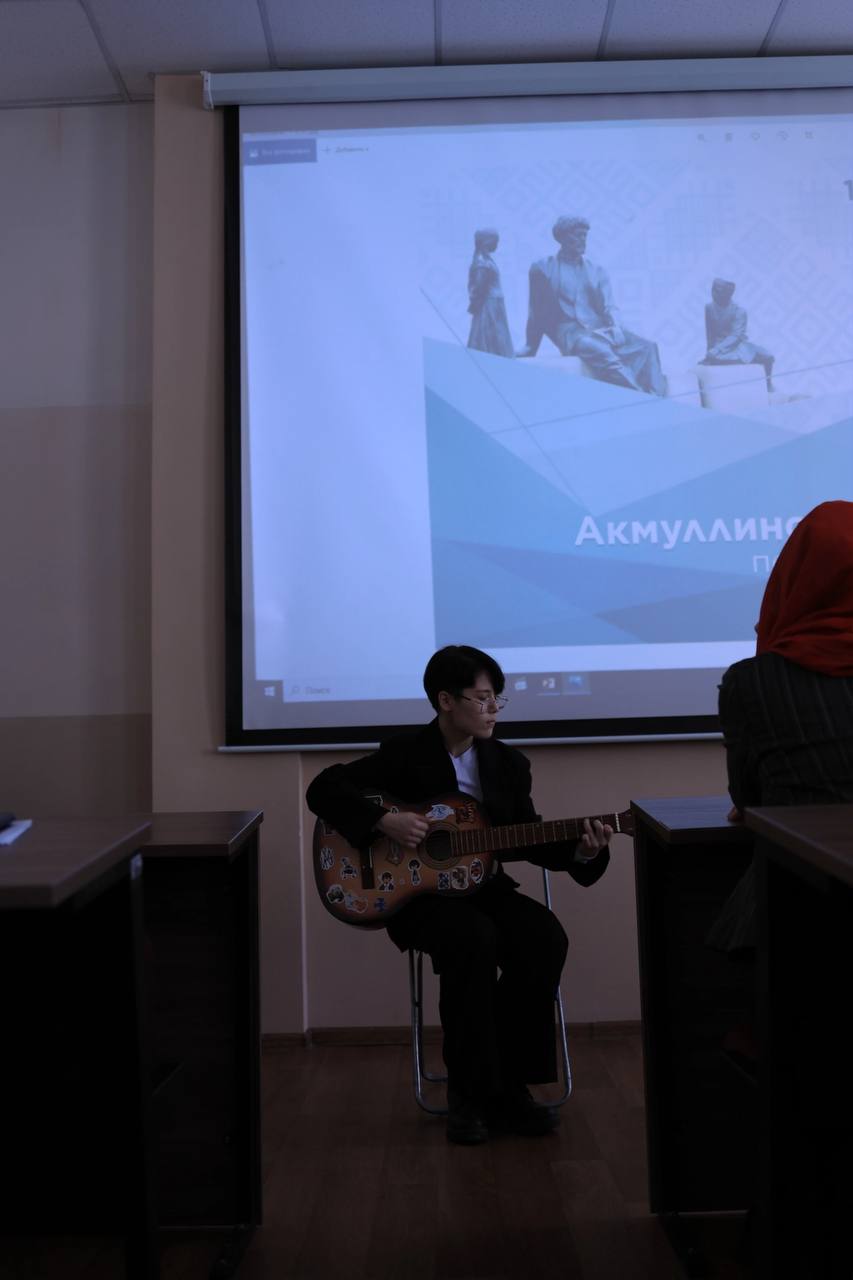 Кроме того, мероприятие включало и концертную программу. Студентка 2 курса Пурахина Полина порадовала зрителей, исполнив башкирскую народную песню "Сыңрау торна ", а студенты 1 курса Абдуллина Зульфия, абсолютный победитель Акмуллинской олимпиады 2024-25 учебного года, выразительно рассказала стихотворение «Башҡортостан», Булякова Айсиля исполнила песню собственного сочинения на гитаре.