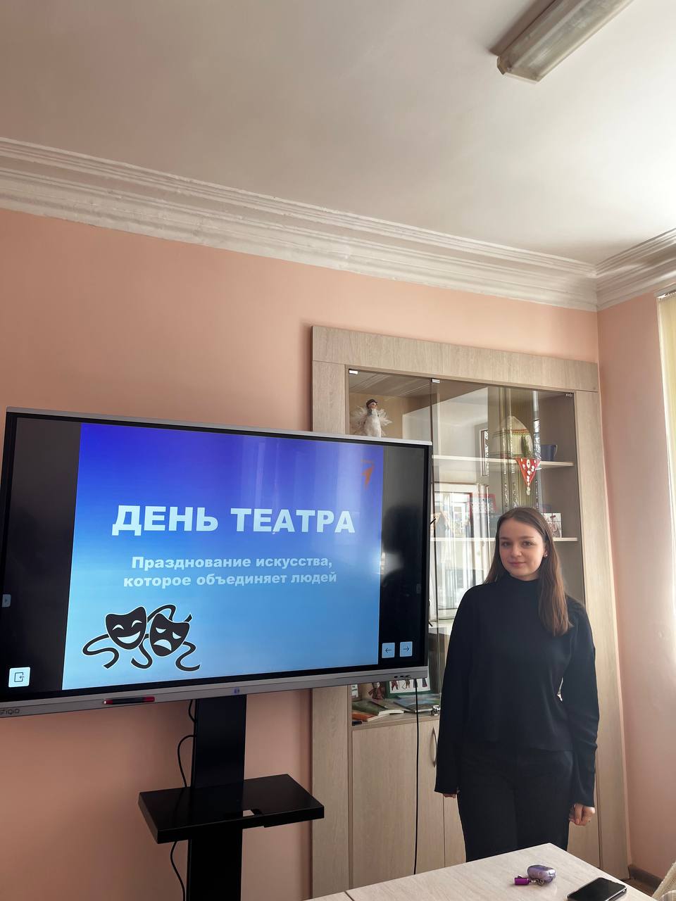 Руководитель РДДМ ФБФ Калмыкова Мария провела урок-лекцию, посвященную дню театра