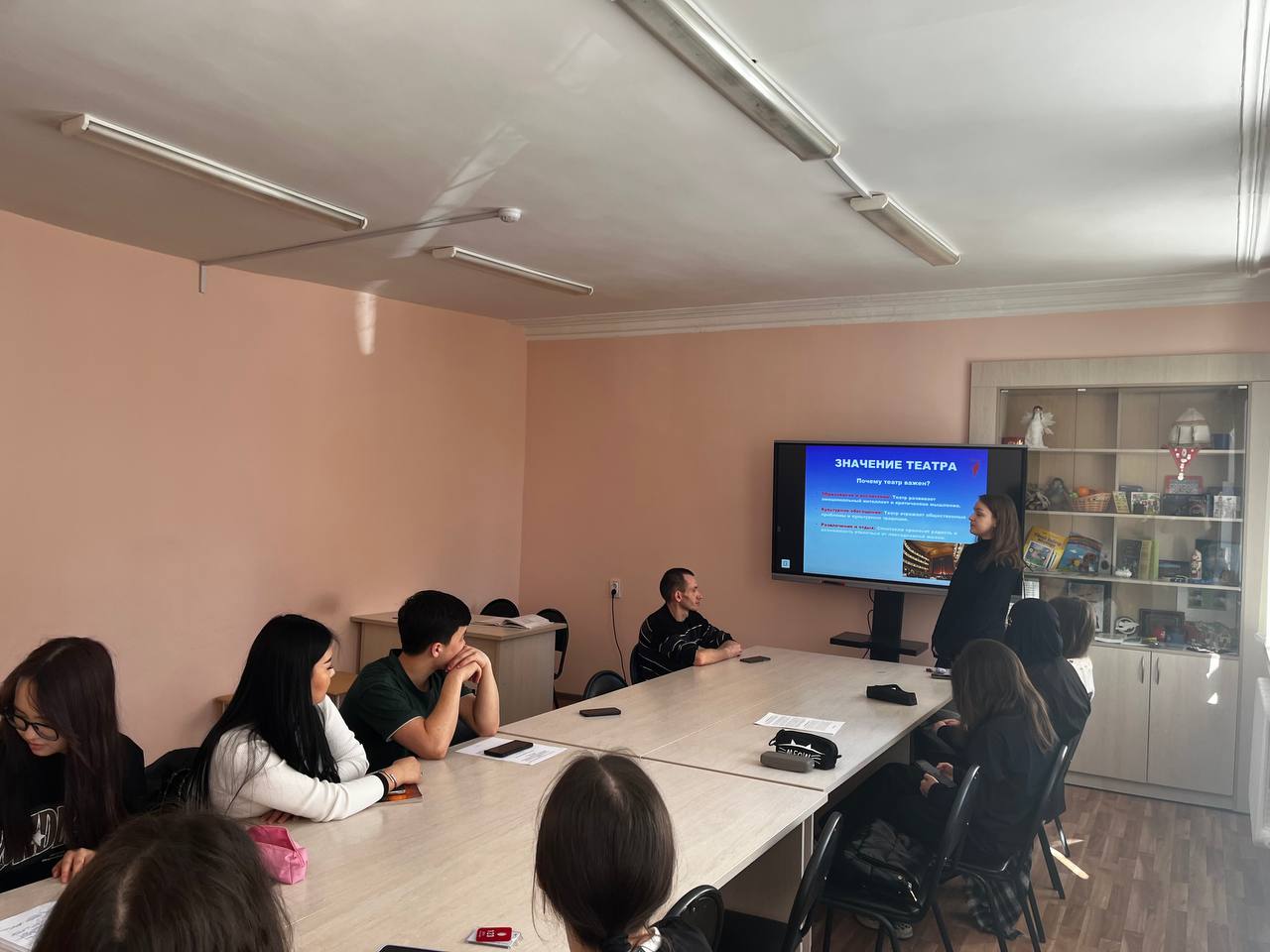 На лекции обсуждались такие аспекты, как история возникновения театра, жанры театра, а также значение театра в жизни молодых ребят и многое другое. Ребята принимали активное участие в обсуждении и пришли к выводу, что театр действительно способствует культурному обогащению, воспитанию, образованию.