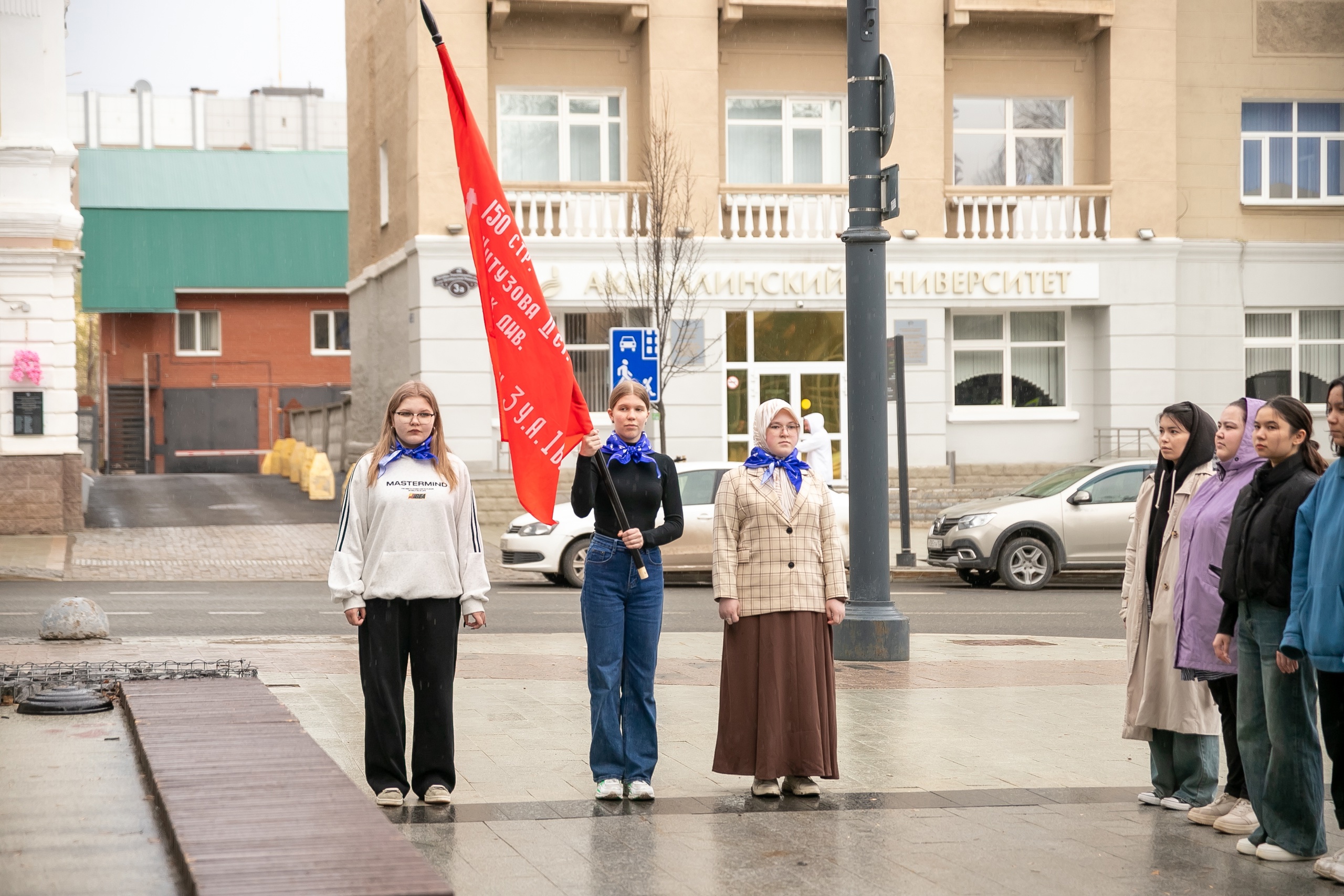 Почетное право поднять флаги на площади перед университетом получили студенты факультета башкирской филологии: