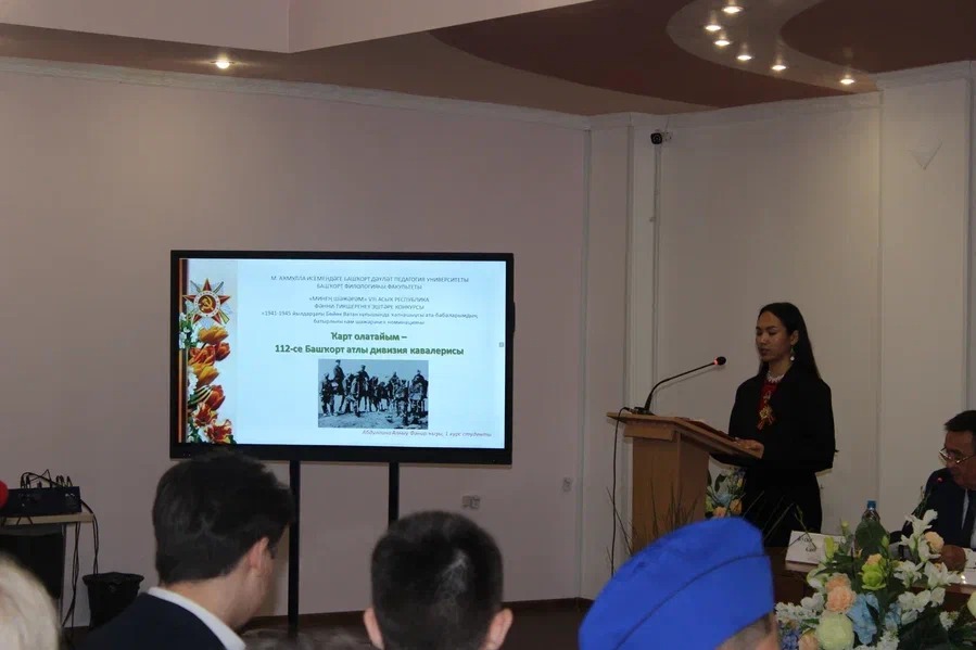Студентка 1-го курса факультета башкирской филологии Абдуллина Алсу одержала победу на VIII открытом республиканском конкурсе научно-исследовательских работ «Мое шежере» на тему «Мои предки — защитники Отечества», посвященный 80-летию Победы в Великой Отечественной войне» в номинации «Героизм и родословная моих прадедов – участников Великой Отечественной войны 1941–1945 гг.»