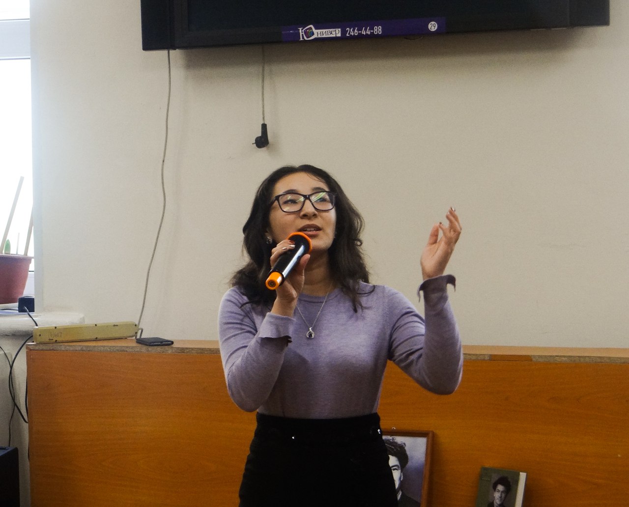 В течение всего вечера звучали стихи известного поэта и песни в исполнении студентов. Также к вечеру памяти были
