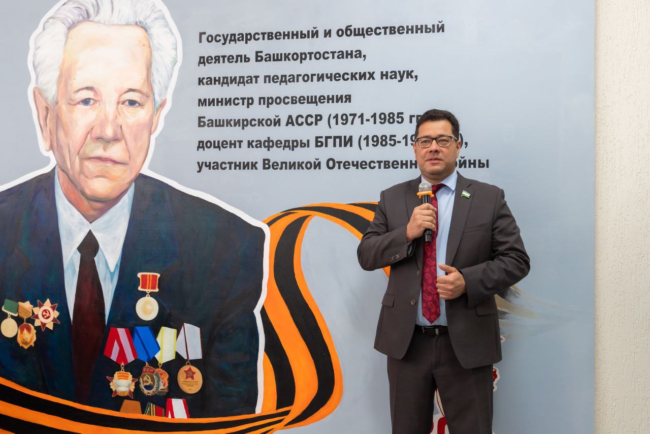 2 сентября в Акмуллинском университете в год памятной даты — 80-летия Победы в Великой Отечественной войне был открыт мурал, посвященный участнику ВОВ, министру просвещения Республики Башкортостан, доценту кафедры научной организации управления школами БГПУ, активисту ветеранского движения — Сабиру Шаяхметовичу Зиганшину. На открытие также были приглашены студенты 1 курса факультета башкирской филологии.