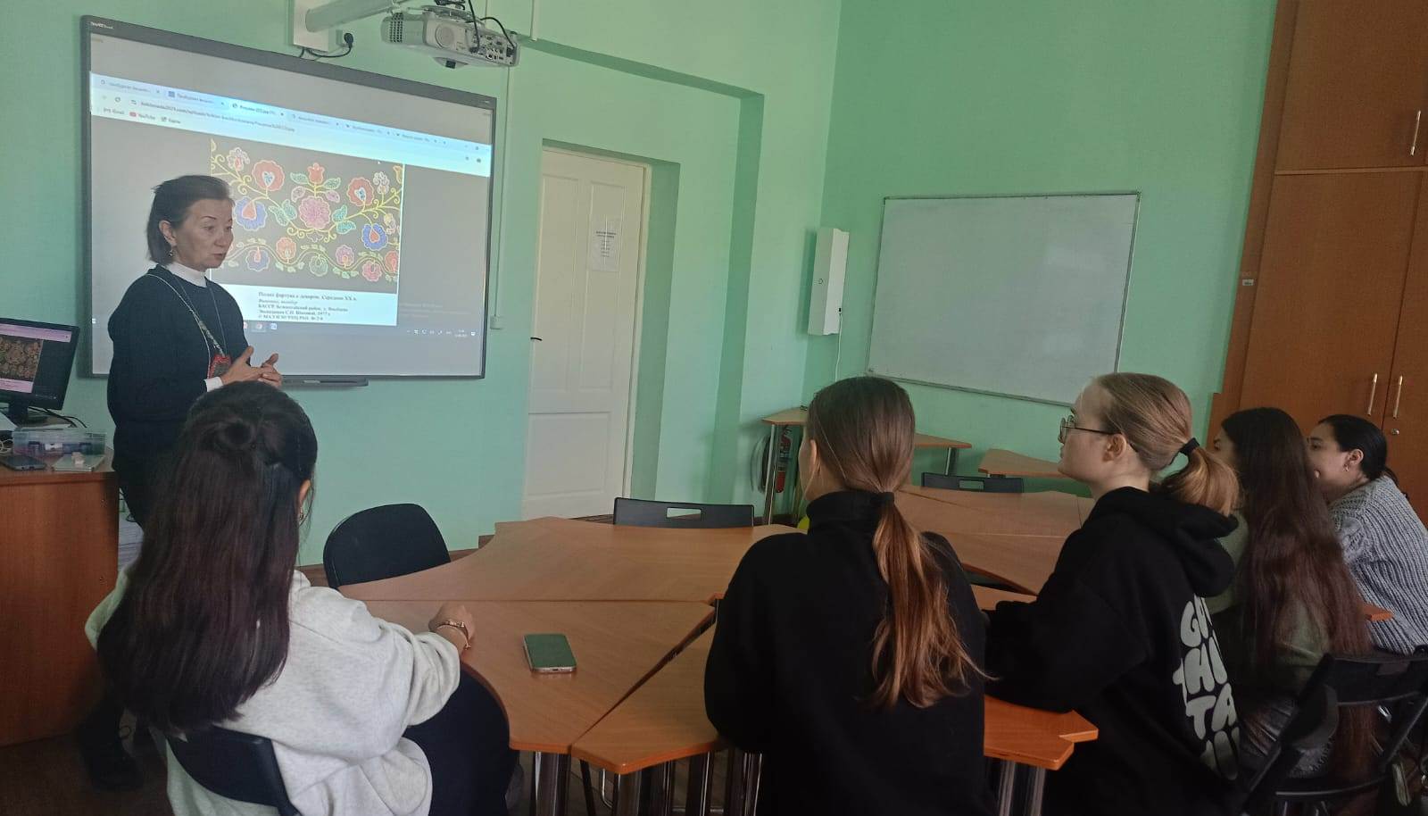 В рамках мастер-класса Г.Р. Шагапова рассказала об истории тамбурной вышивки и её значении в культуре башкирского народа. Студенты узнали, что она украшала не только одежду, но и предметы быта, неся сакральную символику, отражая религиозные и природные мотивы, особенно цветочно-растительные орнаменты и традиционные символы. Уникальные техники и композиции, характерные именно для башкирской вышивки, передавались из поколения в поколение, сохраняя связь с предками и историей.