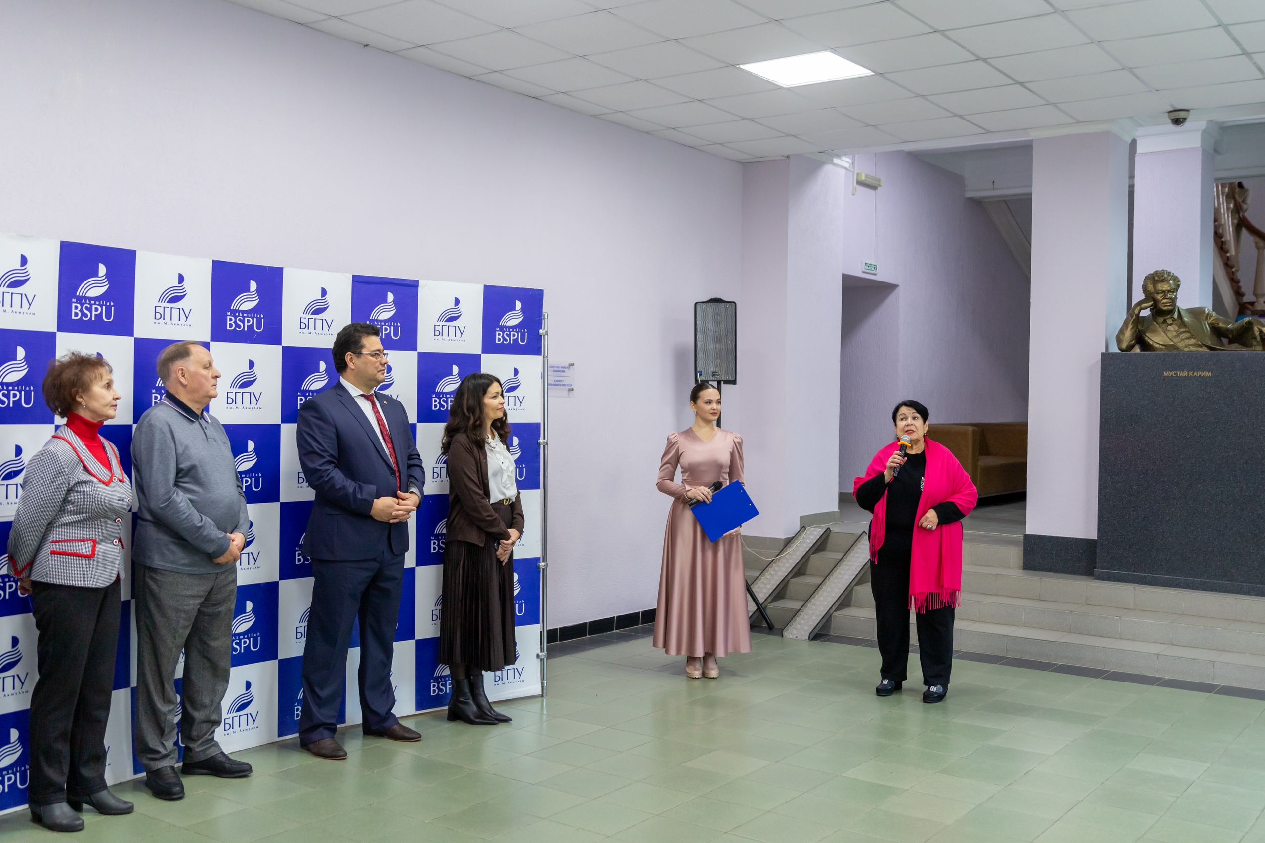 «Сегодня особенный день и для меня лично, и для Акмуллинского университета. 20 октября родился Мустай агай, поэт, писатель, драматург, первый почётный профессор Акмуллинского университета Мустай Карим. «После культа Матери я преклоняюсь только перед культом, имя которому – Учитель» - это слова Мустая агая находят отклик у многих и многих людей. Он сам был образованию  педагог, и каждое его произведение — это живое отражение национальной души, наполненное мудростью, назиданием, истинным провидением. В Акмуллинском университете есть его именная аудитория, и в ней живет его дух, философия,  его доброта и мудрость, проходят большие мероприятия нашего вуза», - сказал, открывая торжественное мероприятие ректор БГПУ имени М. Акмуллы, депутат Государственного Собрания – Курултая Башкортостана Салават Сагитов.