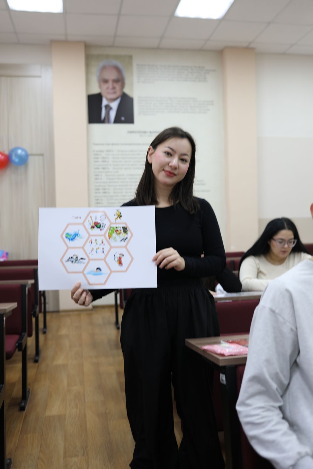 С презентацией выступила Альфия Рауфовна Газизова, опытный учитель башкирского языка и литературы из 58-го лицея Уфы. Она поделилась со студентами своими авторскими методиками, доказывающими, что изучение языка может быть по-настоящему живым и увлекательным.