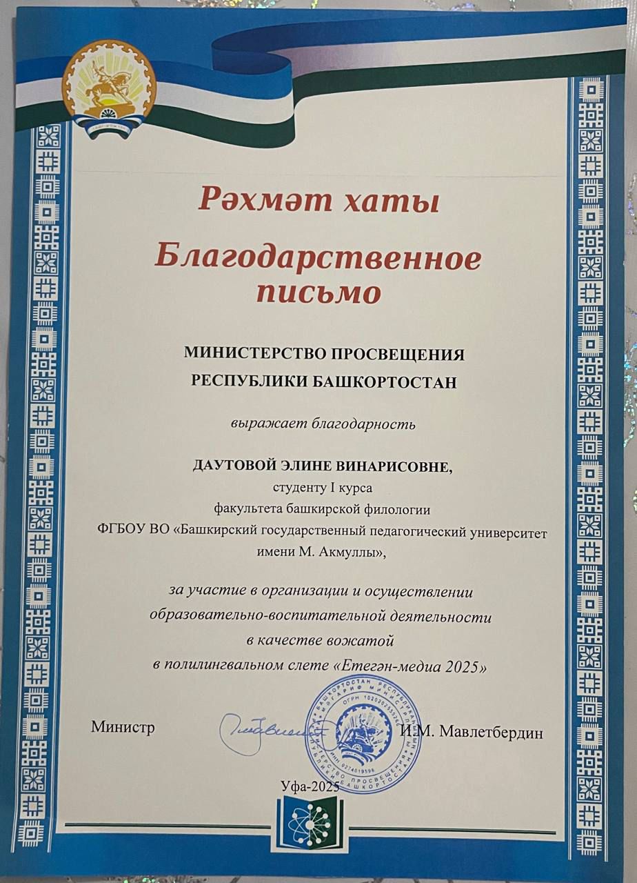 Мы надеемся и верим, что приобретённый опыт будет полезен нашим студентам в их будущей профессии. Отдельная благодарность за поддержку смены «Етегән» выражается Шагиевой Азалии, Бикбулатовой Виктории, Тураевой Камиле, Даутовой Элине и Бурангуловой Гузель!