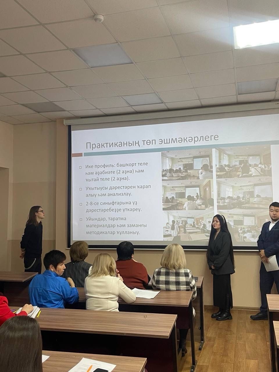 Студенты подготовили содержательные презентации, где подробно рассказали о своих трудовых буднях в разных школах: УГБГ №20 им. Ф. Х. Хамидовны, БРГИ №1 им. Р. Гарипова, Башкирская гимназия №158 им. М. Карима, гимназия №39 им. А. Ш. Файзуллина, МБОУ школа №75, МБОУ гимназия №105, СОШ №70, МАОУ Башкирский лицей №2 им. Г. Ибрагимова, МАОУ Школа №119, а также ГБОУ РГИ им. Г. Альмухаметова. Каждый класс, каждый урок стал уникальным опытом. Они не просто подвели итоги, а проанализировали свои успехи и трудности, превратив их в полезные советы для будущих практикантов.