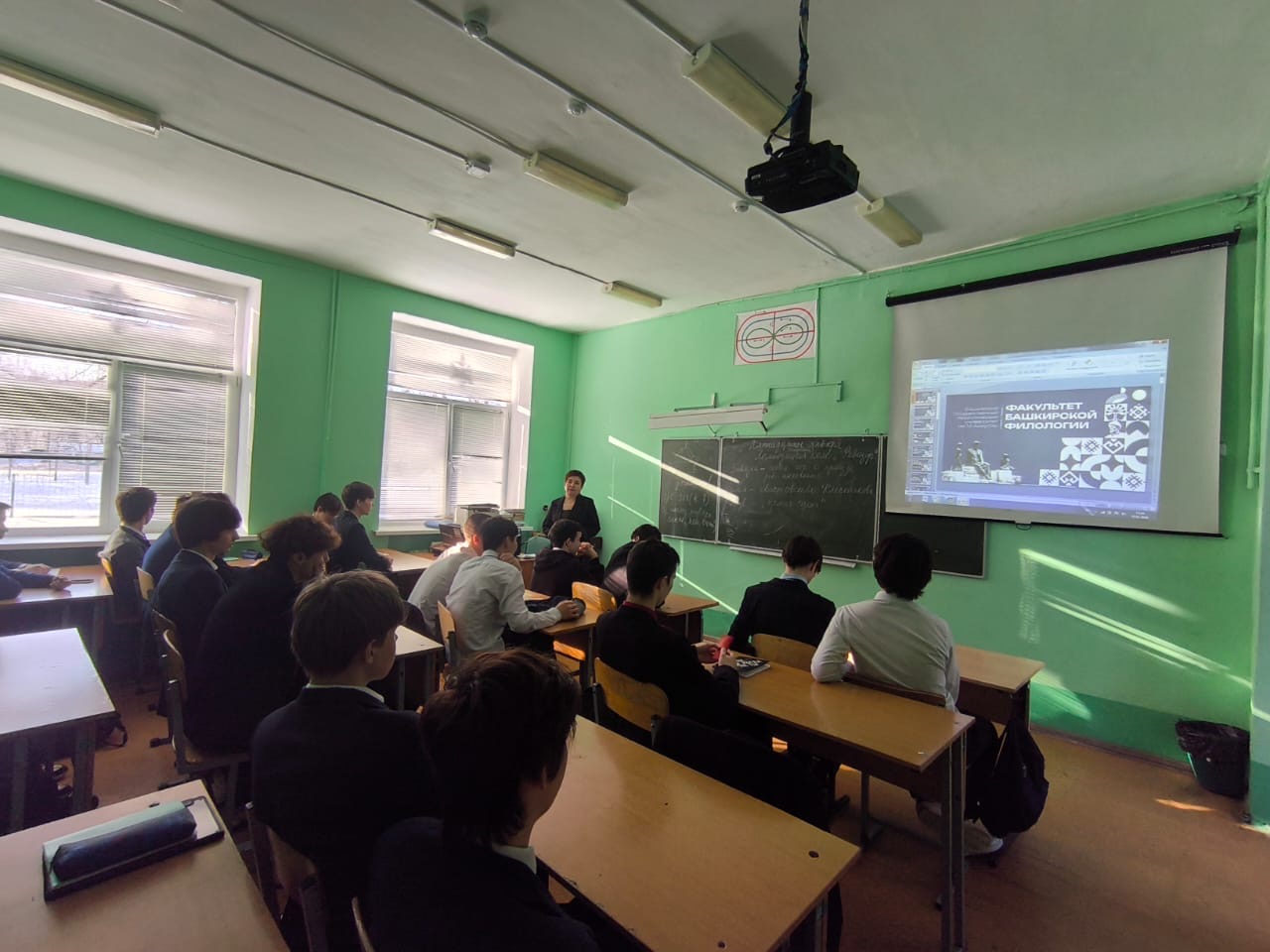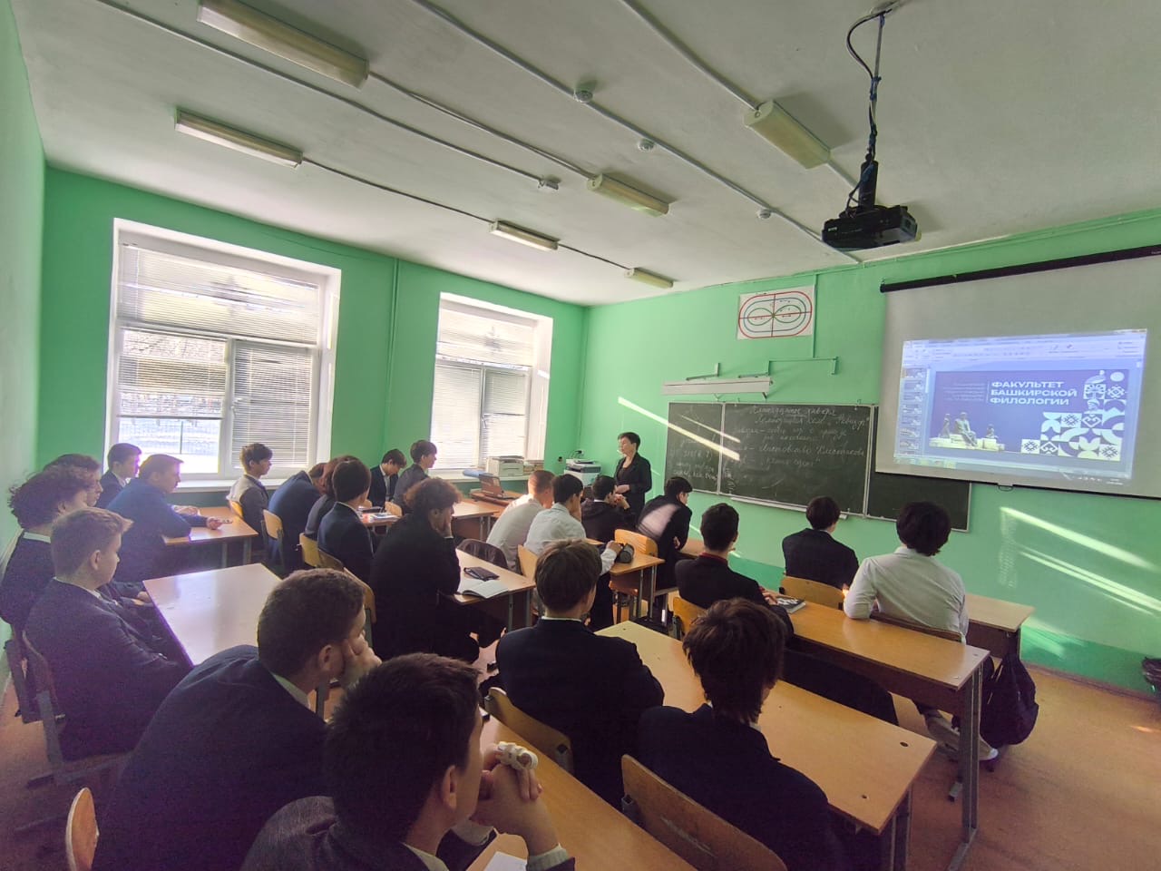 15 января заместитель декана во воспитательной работе и молодежной политике Валиева Г.Д. провела профориентационную работу с обучающимися Башкирского лицея-интерната города Стерлитамак.