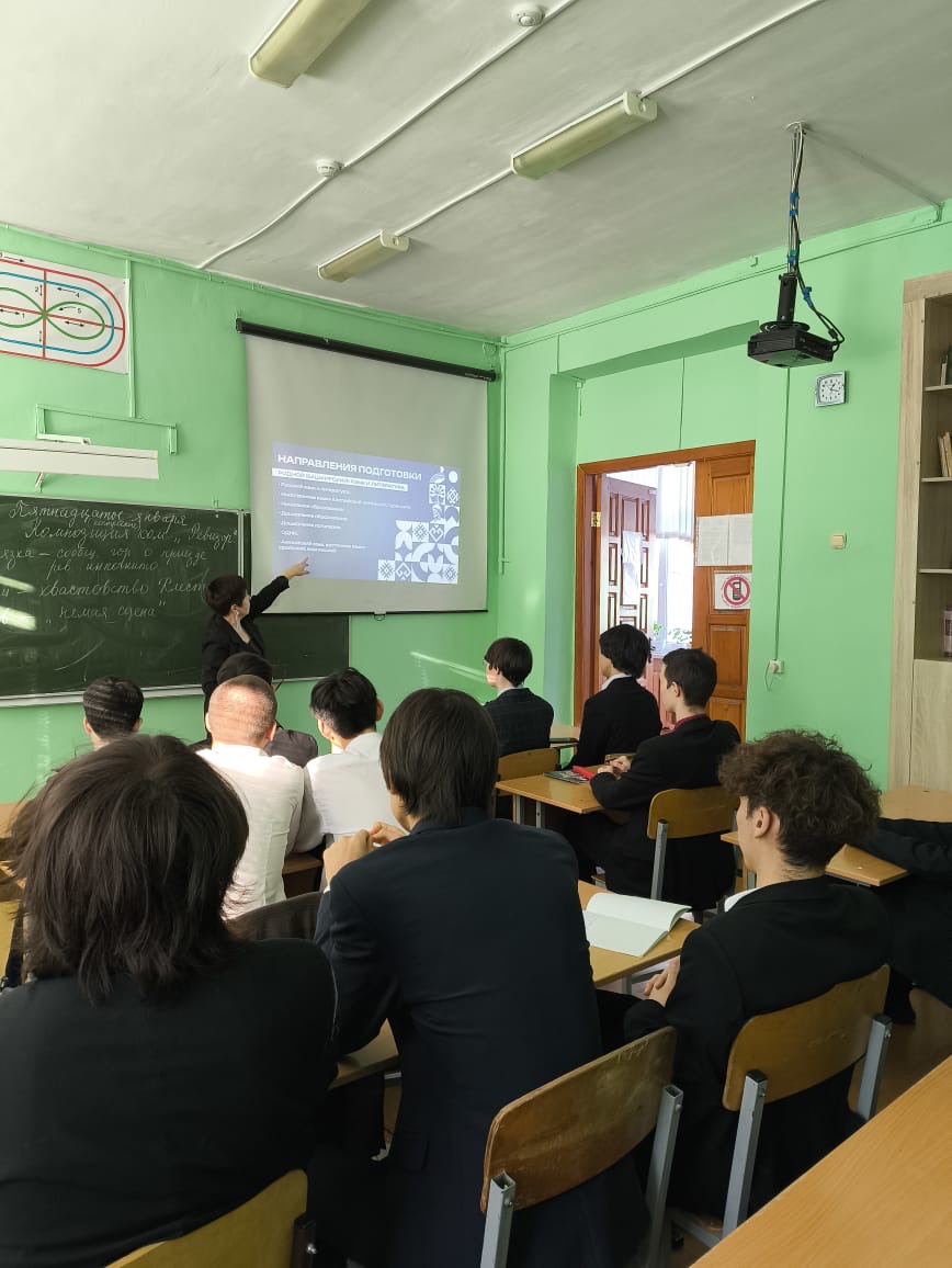 В ходе встречи школьники познакомились с актуальными направлениями профессионального развития, узнали о возможностях дальнейшего обучения, выборе будущей специальности и требованиях современного рынка труда. Особое внимание было уделено значению осознанного выбора профессии, личной мотивации и развитию индивидуальных способностей.