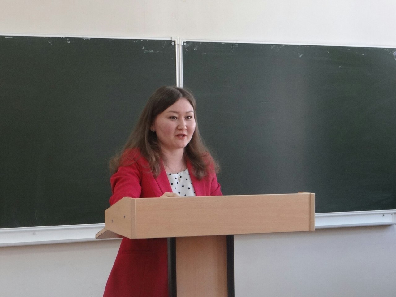 Выступление А.А. Бияздыковой было посвящено когнитивной модели "ана" ("мать") в произведении А. Баймухаметова "Не оставляй, мама". Студенты и преподаватели задавали интересующие их вопросы.