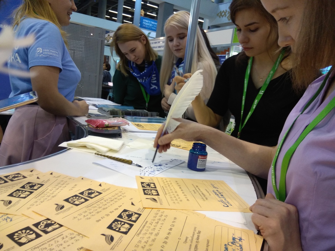 Неподдельный интерес вызвала зона каллиграфии, где студенты факультета башкирской филологии предлагали посетителям научиться красиво и правильно писать на башкирском языке при помощи пера и чернил. В лаунж-зоне был проведен мастер-класс по китайской каллиграфии. Как известно, в Китае каллиграфия издавна является одним из традиционных видов высокого профессионального искусства, наряду с живописью. Она гармонично сочетает в себе противоположности: ровные и изогнутые линии, бледность и насыщенность штрихов, а также круглые и квадратные элементы. Не зря в китайских учебных заведениях через уроки каллиграфии обучают младшее поколение эстетическому вкусу и умению ощущать настоящее искусство. Участники салона образования смогли познакомиться с особенностями и основными приемами традиционной китайской каллиграфии, узнали о традиционных китайских материалах и инструментах для каллиграфии.
