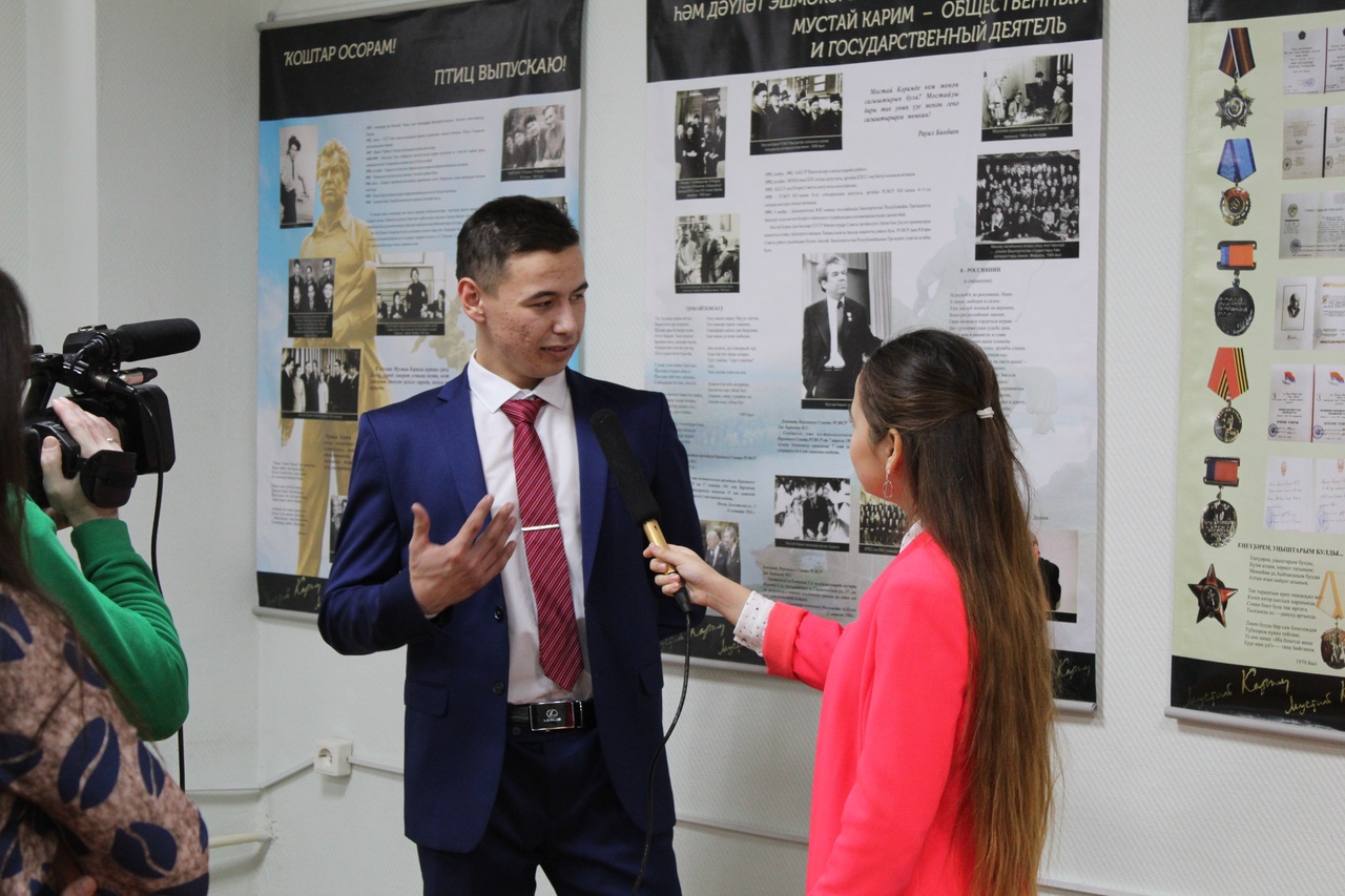 6 февраля студенты факультета башкирской филологии вместе c заместителем декана по воспитательной работе, старшим преподавателем Г.Н. Кильмаковой посетили музей 112-й Башкирской кавалерийской дивизии, где была организована выставка «Гордость нашей литературы», посвящённая 100-летию со дня рождения народного поэта Башкортостана Мустая Карима. Сотрудник музея А.Д. Давлетгареева рассказала студентам о жизни и творчестве великого поэта, ознакомила с выставкой, показала фильм о Мустае Кариме. В конце встречи студенты рассказали стихотворения поэта и дали интервью для детского телеканала «Тамыр».