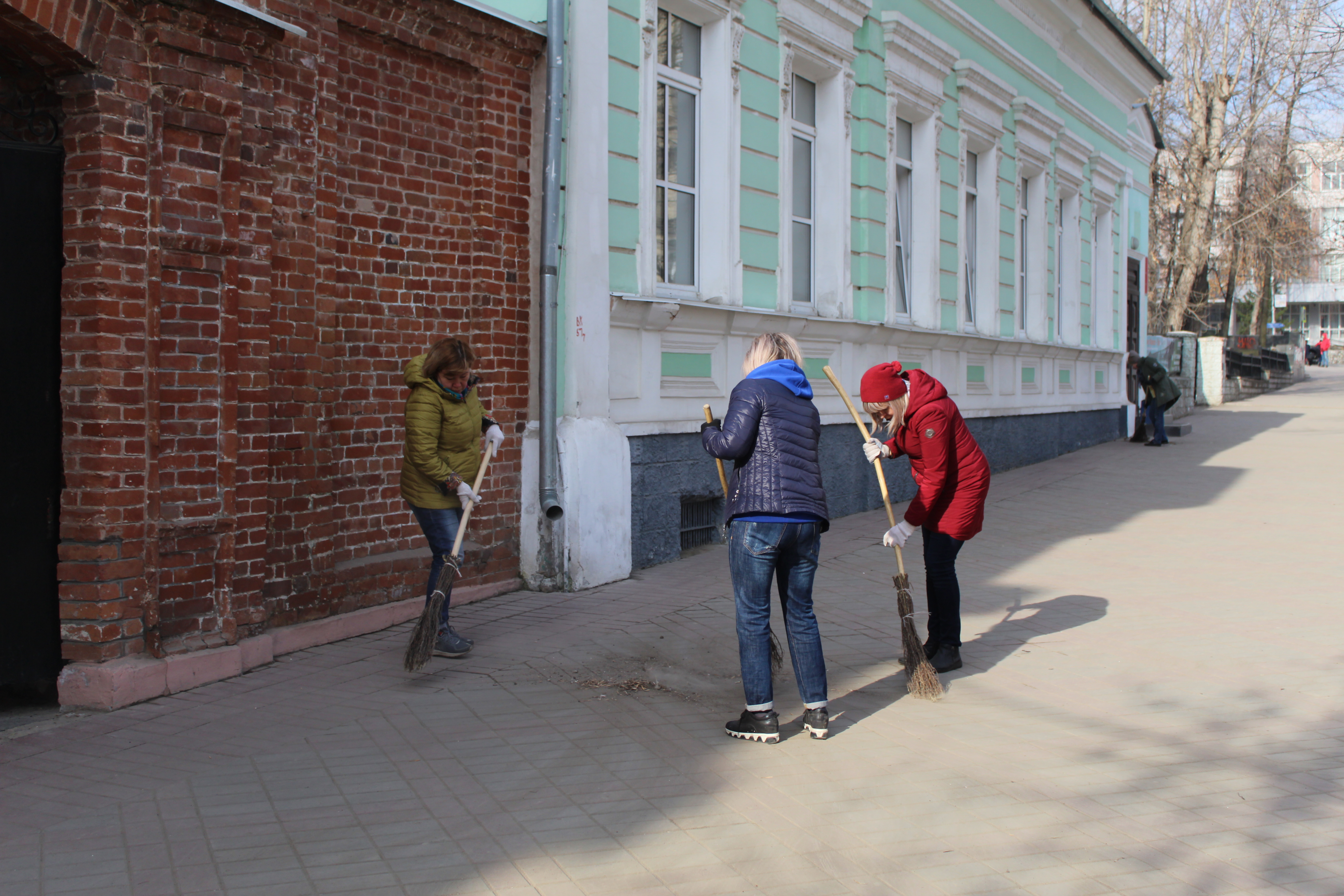 Вооружившись лопатами, граблями, вениками, пакетами для сбора мусора, они принялись очищать территорию факультета. Отличное настроение объединило всех участников общего и полезного дела.