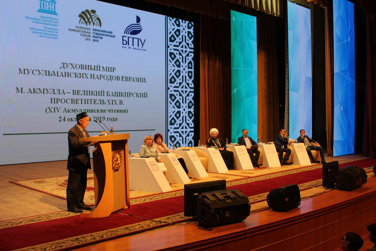 24 октября в Конгресс-холле "Торатау" в рамках IV Евразийского гуманитарного форума прошла Всероссийская (с международным участием) научно-практическая конференция "Духовный мир мусульманских народов Евразии. М. Акмулла – великий просветитель XIX в." (XIV Акмуллинские чтения).