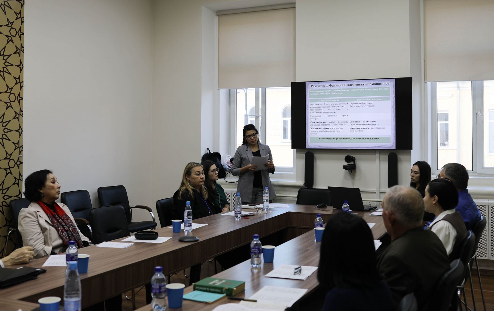 Главный научный сотрудник Научно-исследовательского центра башкирского фольклора, проф.  Х.В. Султанбаева рассказала о биографии, преподавательской деятельности академика М.В. Зайнуллина. В продолжение о его вкладе в развитие лингвокультурологии выступила доцент кафедры башкирского языка и литературы А.Р. Хурамшина.