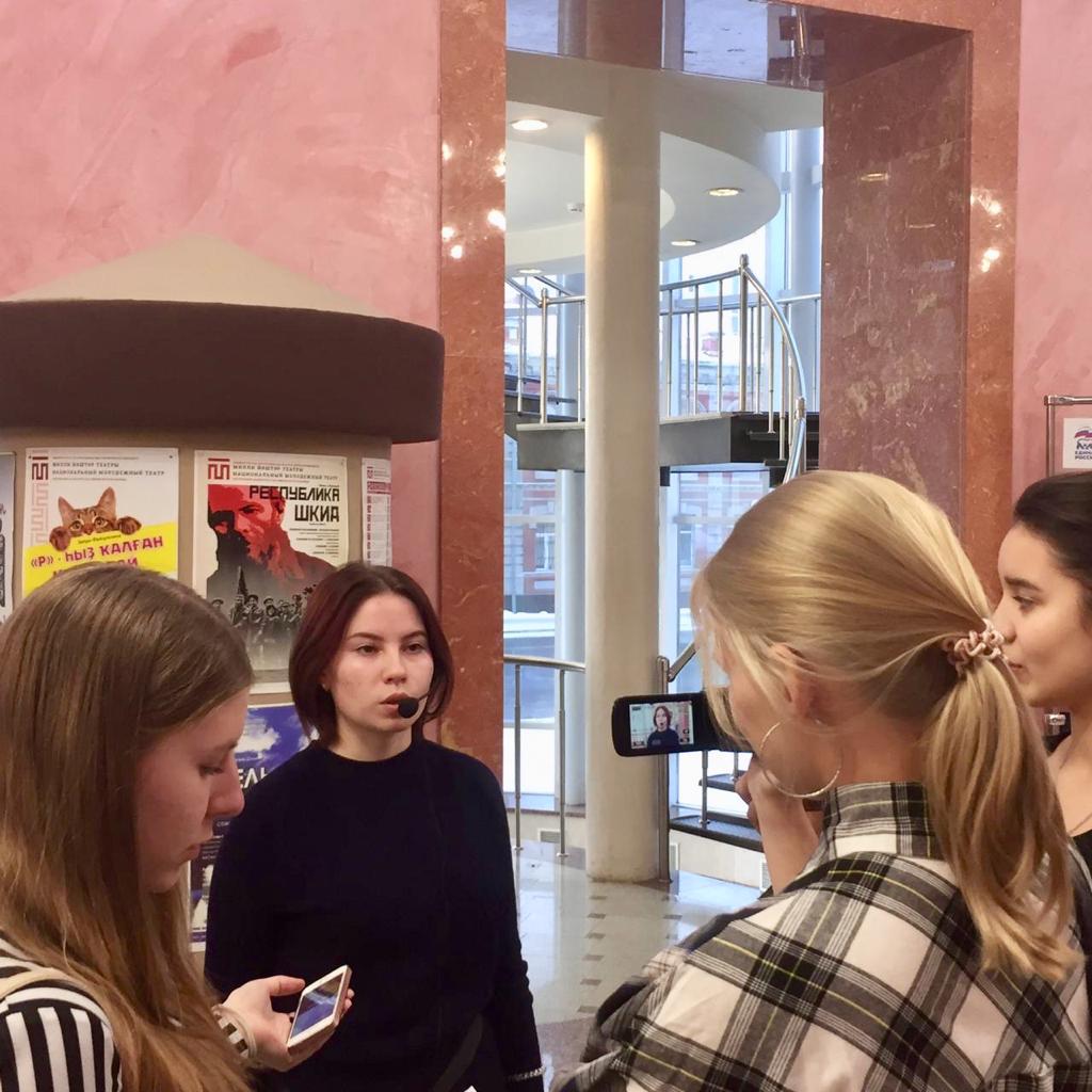 В рамках проведения междисциплинарного курса  05.02 «Проведение и разработка экскурсии на английском языке» студенты второго курса специальности «Туризм»  посетили Национальный молодежный театр. До начала театрального представления  «Ночевала тучка золотая...» отсняли рабочие материалы видео- экскурсии. Тема детства и войны никого не оставила равнодушным.