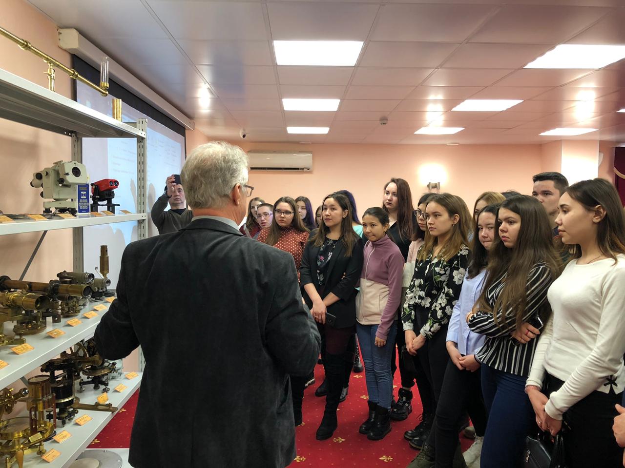 Председатель совета директоров ГЕОСТРОЙИЗЫСКАНИЯ Шагаев Андрей Михайлович познакомил студентов разных учебных заведений с исторической экспозицией геодезических приборов - части одного из крупнейших музеев страны. Студенты Колледжа БГПУ, БГАУ, БГУ, БАСК и Уфимского лесотехнического колледжа увидели геодезические и измерительные приборы, которыми работали первопроходцы в геодезической области, послушали лекцию об истории развития геодезии с истоков до современных дней.