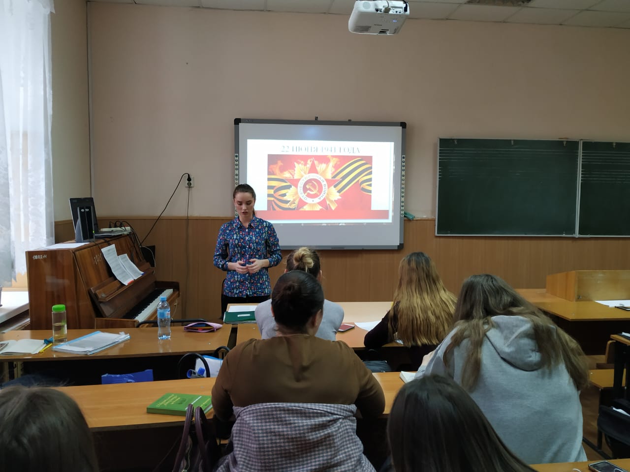 20 февраля на специальности "Музыкальное образование" состоялся  заключительный этап конкурса профессионального мастерства "Лучший по профессии". На первом этапе конкурса проводилась олимпиада по психологии, педагогике и методике преподавания музыки в школе. На втором - составление лучшего сценария урока музыки для школьников, посвященного 75-летию победы в ВОВ. В финале конкурса студенты   продемонстрировали фрагменты своих уроков, которые оценивались по нескольким модулям. Модуль А - качество мультимедиа презентации, модуль В - методика проведения урока музыки, модуль С - игра и аккомпанирование на музыкальном инструменте, модуль D - вокал и исполнение песни под собственный аккомпанемент, модуль Е - управление хором в процессе разучивания песни. Уроки получились качественные и разнообразные и интересные, прозвучало много песен и музыкальных произведений, посвященных Великой отечественной войне. Отрадно, что на занятиях были приведены взаимосвязи с другими видами искусства: живописью, графикой, кино, театром. В качестве жюри были приглашены заместитель директора по учебно-воспитательной работе Колледжа Гардамшина Н.Н., Заслуженный учитель РБ, Отличник образования РБ и РФ Ямалетдинова Н.Г., председатель ЦК специальности "Музыкальное образование" Мирзаянова М.М. В результате были определены  победители: 3 место - Тимирбаева Т., 2 место - Садыковаа Р., Питаева А ., 1 место- Давлетгареева Алсу. Желаем студентам успехов и дальнейшего совершенствования в будущей профессии - учитель музыки и музыкальный руководитель!