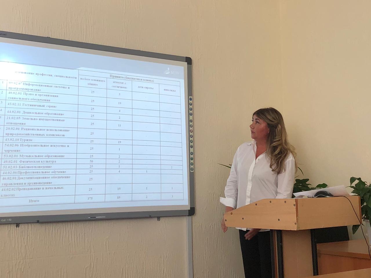 Об итогах приемной кампании выступила заместитель секретаря приемной комиссии Мукадасова А.Р.
