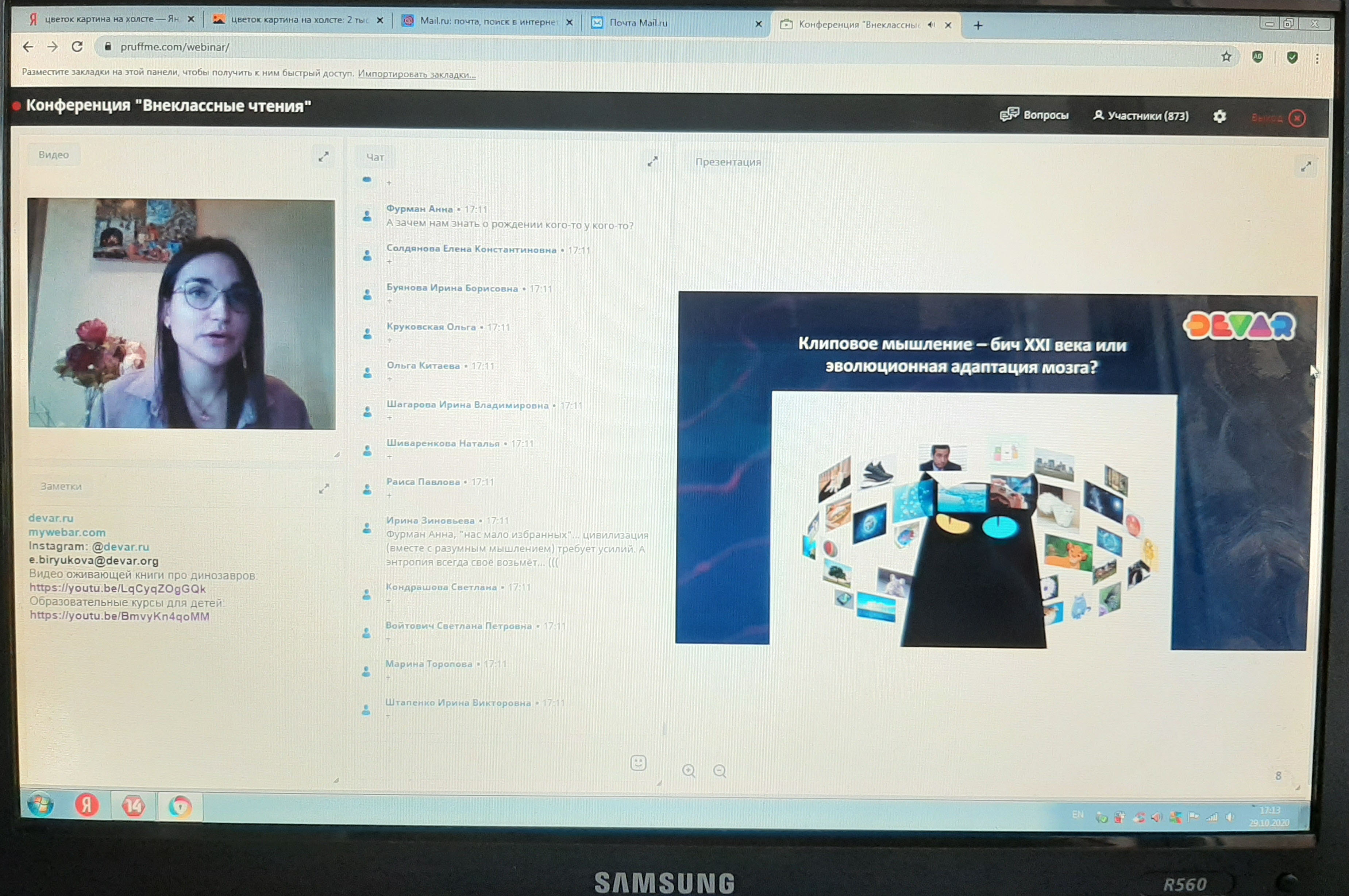 27-29 октября 2020 года студенты третьего курса группы 9Б-31-18(21) специальности «Библиотековедение» Колледжа БГПУ им. М.Акмуллы и методист Гафарова Л.В. приняли участие в онлайн-конференции "Внеклассные чтения", которая была организована электронным журналом «Чтение детям»(http://www.readchildren.ru). За три дня конференцию посетили онлайн 5129 участников из 30 стран мира. На конференции были рассмотрены актуальные темы и вопросы в области детского и подросткового чтения по трем основным направлениям: «Профессиональная программа для библиотекарей, которые работают со школьниками»; «Подросток и книга»; «Электронные ресурсы и чтение». Программа конференции была очень насыщенной: выступления спикеров, Круглый стол, творческие встречи с писателями и практические мастер-классы, онлайн-общение с организаторами и партнерами конференции. Студенты колледжа получили сертификаты участников конференции, а также приобрели новые знания и навыки в области своей будущей профессии.