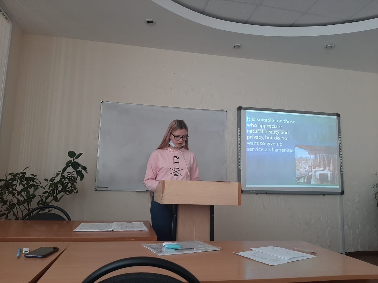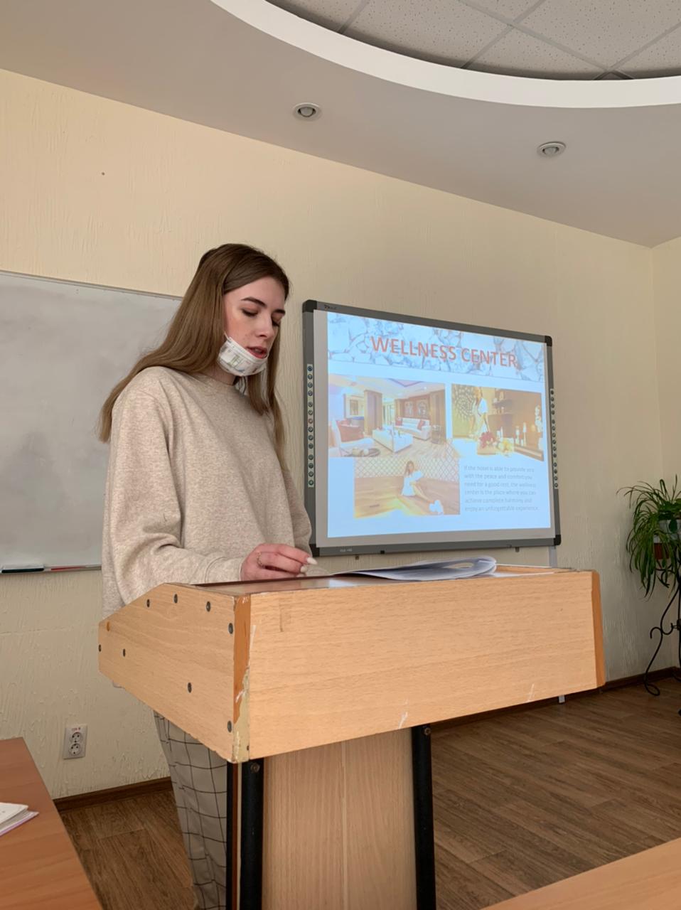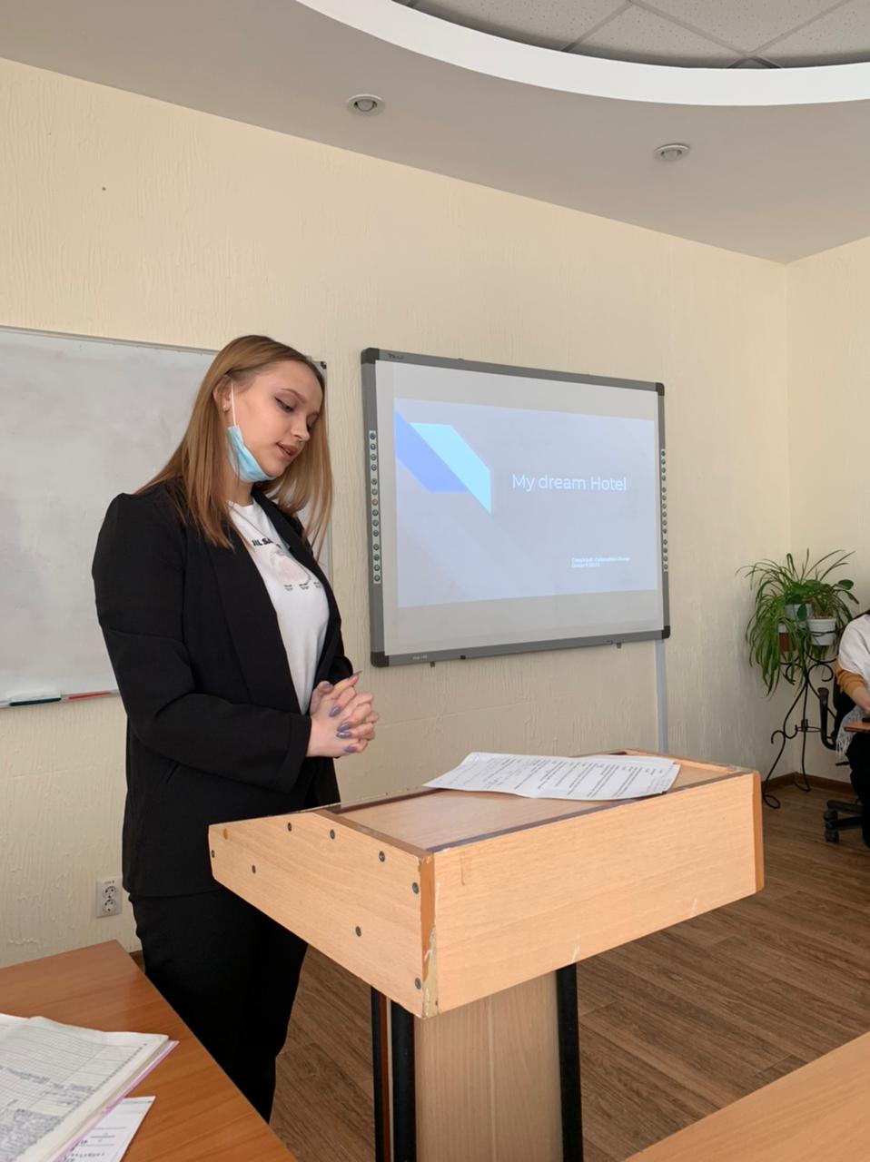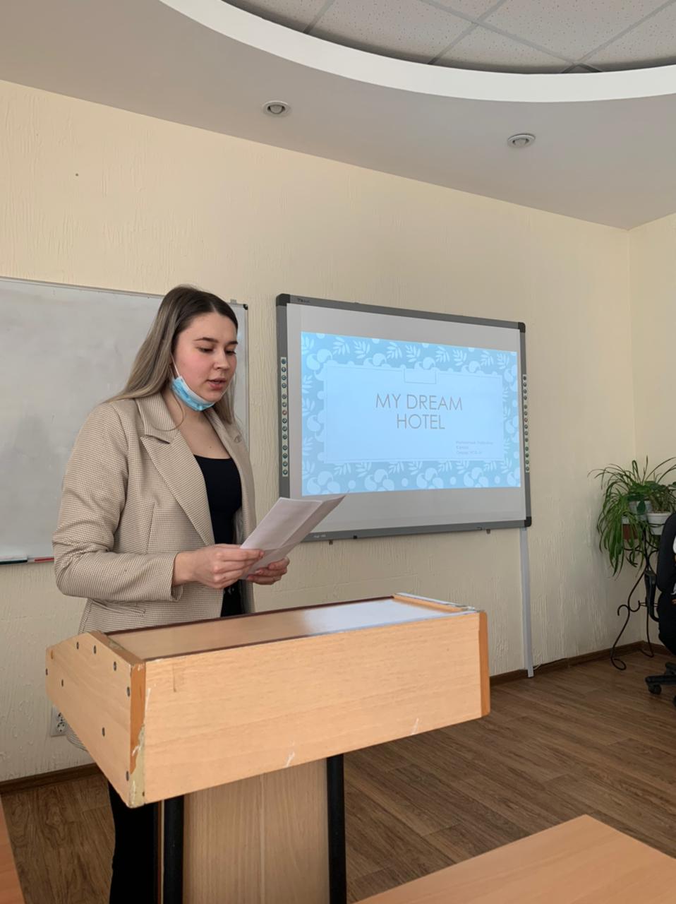 12 марта в группе 9ГС31-18(21)прошла Защита студенческих «Отель моей мечты» на английском языке. Выпускники готовы открыть свои отели в различных уголках мира: на  берегах Мальдивских островов и в радушной Турции, холодной Скандинавии и даже Южной Корее. Рассматривались основные и дополнительные услуги, типы номеров, стоимость размещения и развлечения. Были интересные презентации и жаркие обсуждения достоинств и недостатков будущих гостиниц.