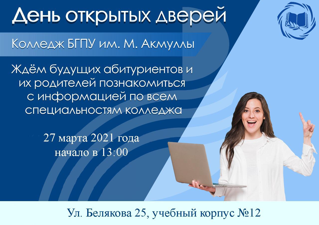Колледж БГПУ им.М.Акмуллы приглашает на День открытых дверей