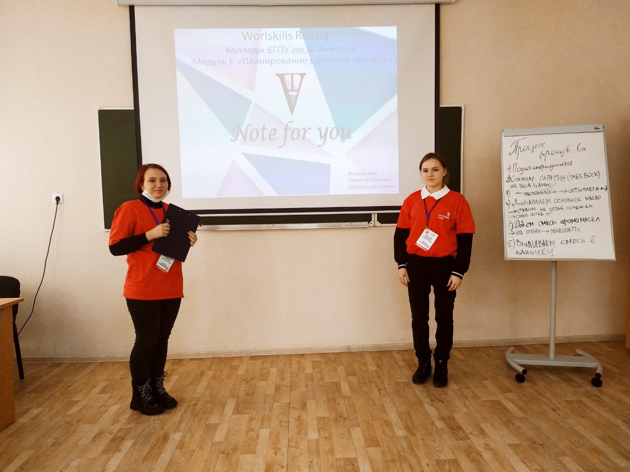 В рамках VII Открытого Регионального чемпионата WorldSkills Russia -2021 на базе 12 корпуса организована площадка по компетенции «Предпринимательство» под руководством главного эксперта, преподавателя Колледжа БГПУ им. М. Акмуллы О.В. Зыряновой. Компетенция «Предпринимательство» представляет собой командное соревнование по продвижение продукции (услуг) собственной фирмы. Участники реализовывают проекты на основе заранее разработанного бизнес- плана и предоставляют свои наработки для экспертной оценки жюри.