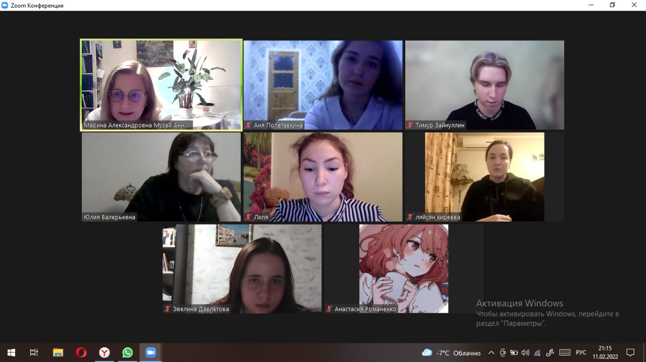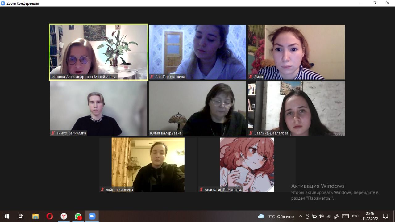 11 февраля, провели онлайн-занятие «Смуглый отрок бродил по аллеям…». Ребята вместе с преподавателем русского языка и литературы Крыжановской Ю.В. и сотрудниками музея обсудили влияние поэзии А.С.Пушкина на творчество А.А.Ахматовой. Занятие было очень интересным. Ребята узнали много нового из жизни  этих великих русских поэтов.