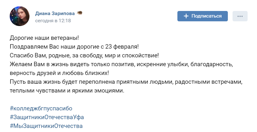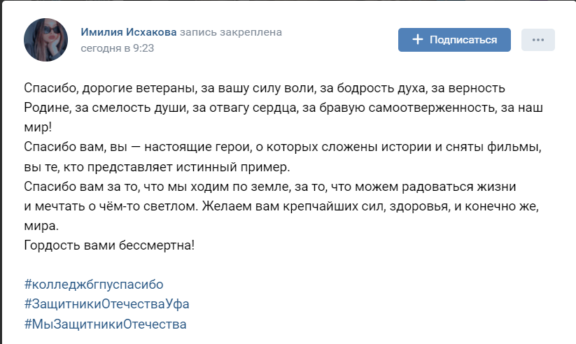 С 19 февраля любой желающий может написать ветеранам Великой Отечественной войны письмо со словами благодарности или же поздравлениями с 23 февраля. Колледж БГПУ им.М.Акмуллы не остался в стороне и  тоже присоединился к акции  #ПисьмоПобеды