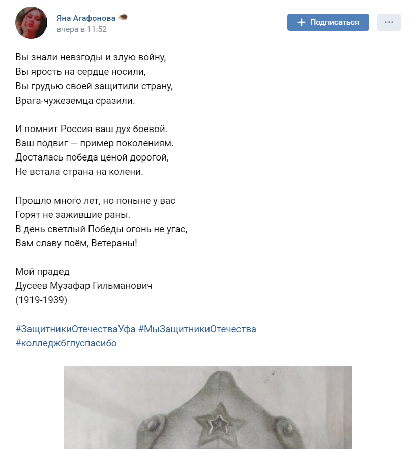 В преддверии праздника наш Колледж БГПУ им.М.Акмуллы принимает участие в акции, посвященному празднику: "Помним своих героев"
