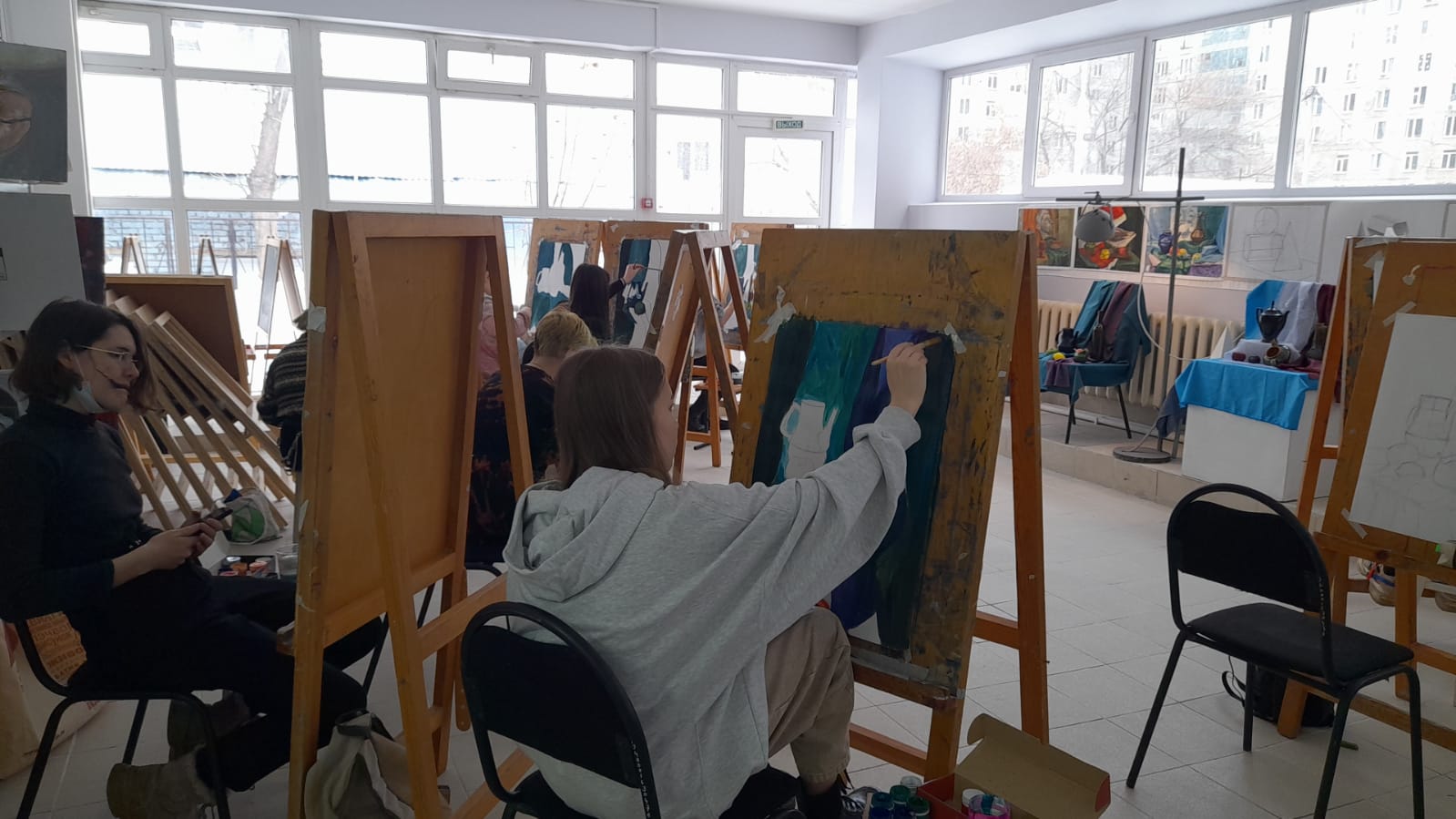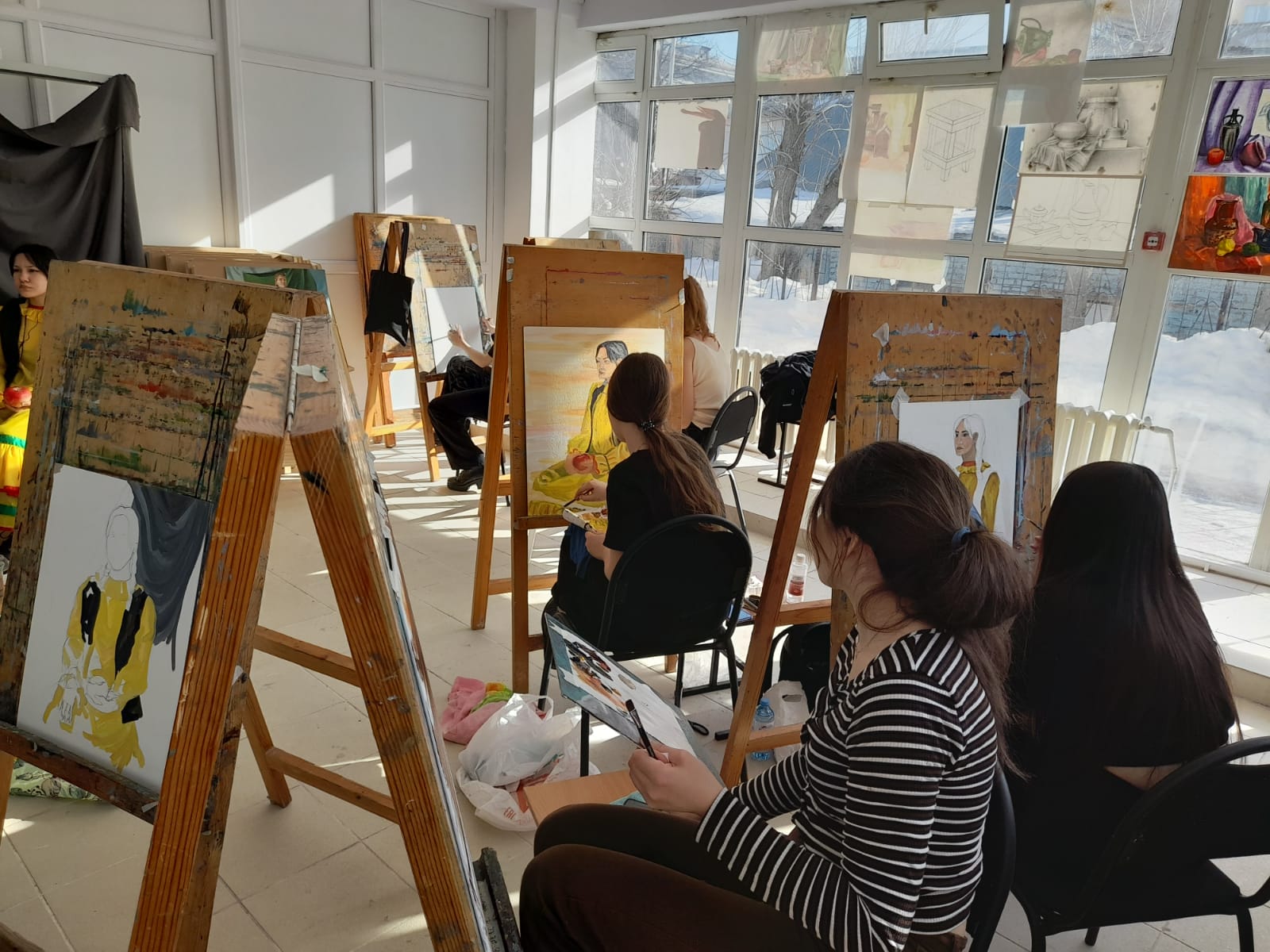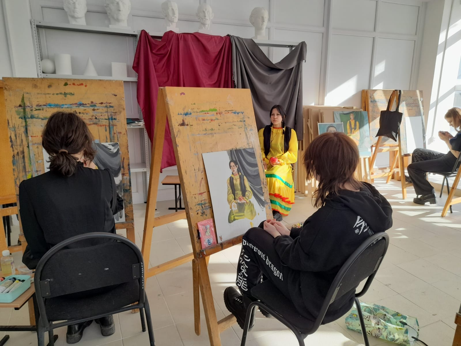 Студенты третьего курса участвовали в конкурсе «Фигура в национальном костюме», в технике масляной живописи: