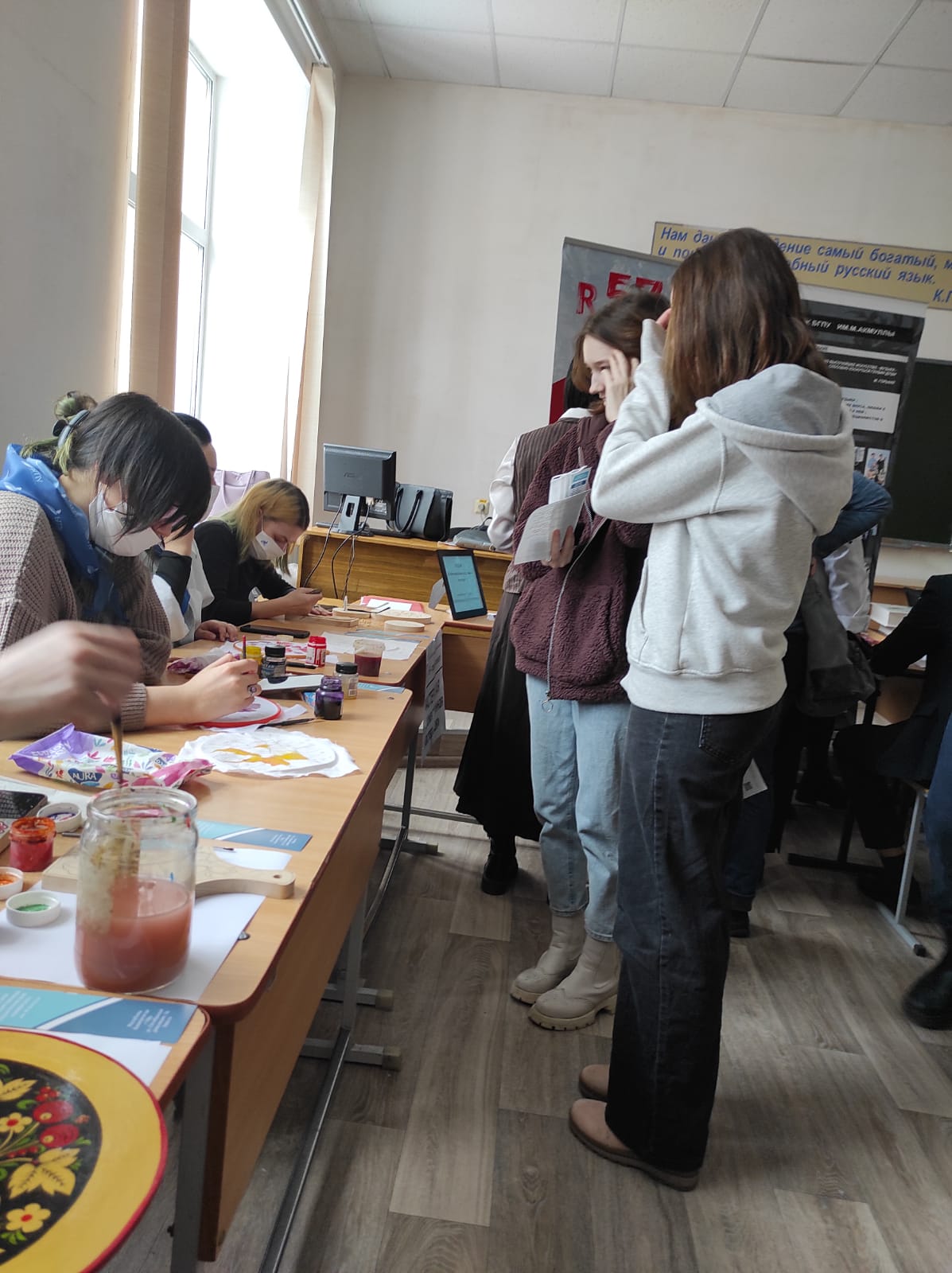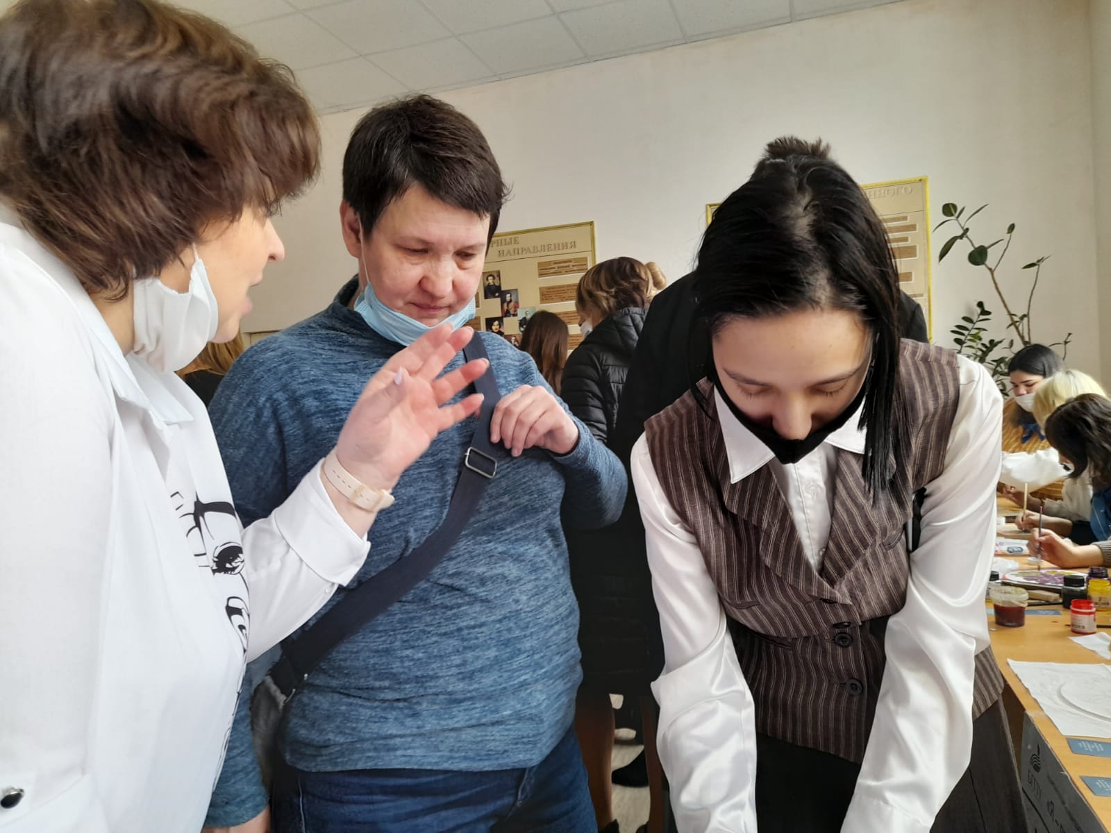 Декадник завершился 26 марта активным участием студентов–волонтеров и преподавателей нашего отделения в проведении Дня открытых дверей в колледже. В этот день в 12-м учебном корпусе работала «Художественная мастерская», студенты всем желающим гостям показывали мастер-класс по батику, художественной росписи по дереву и резьбе по дереву.