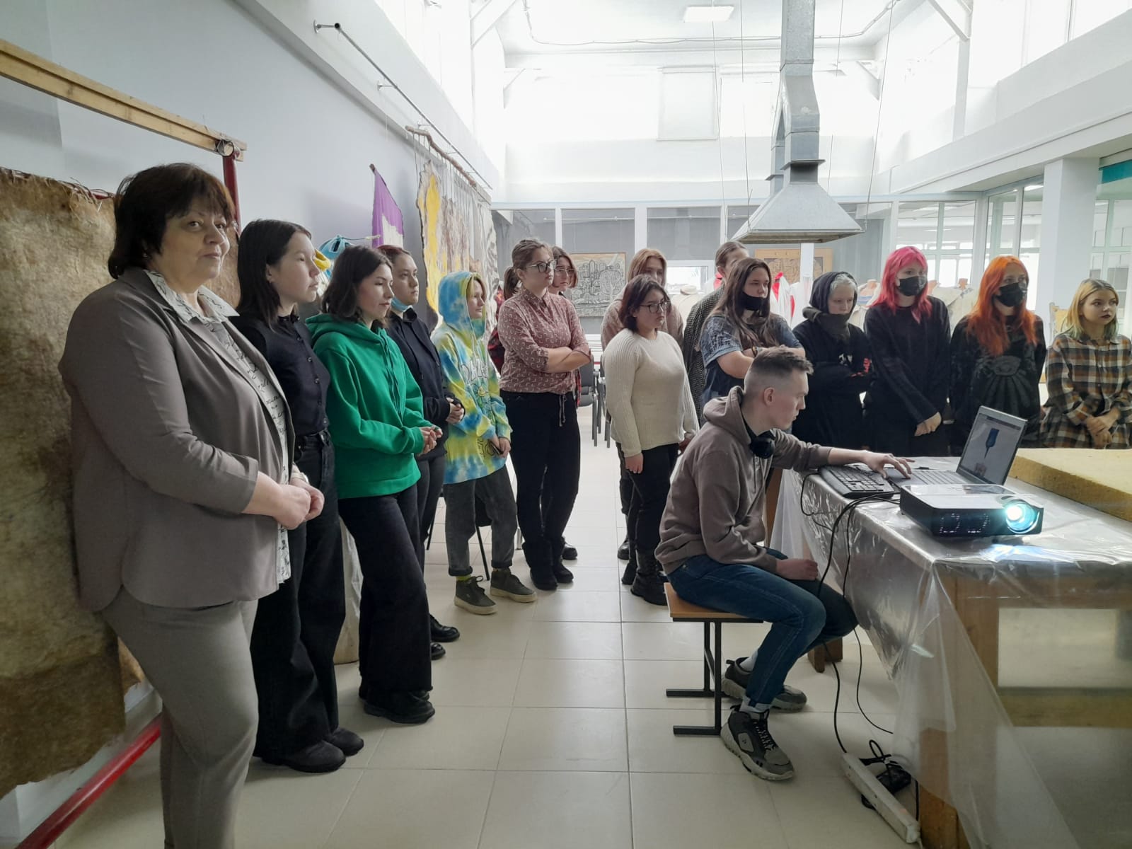 Стартовал декадник 19 апреля, в один из дней Аккумуллинских суббот,  проведением профориентационной встречи с учениками школ Октябрьского района №127 и №159. Заведующая отделением Г.В. Козлова провела экскурсию по Арт-кластеру, показала мастерские, кабинеты в которых занимаются наши студенты, а так же познакомила с Центром войлока. Студентка 4 курса Валеева Алсу провела мастер-класс росписи по ткани «Мастерская по батику».
