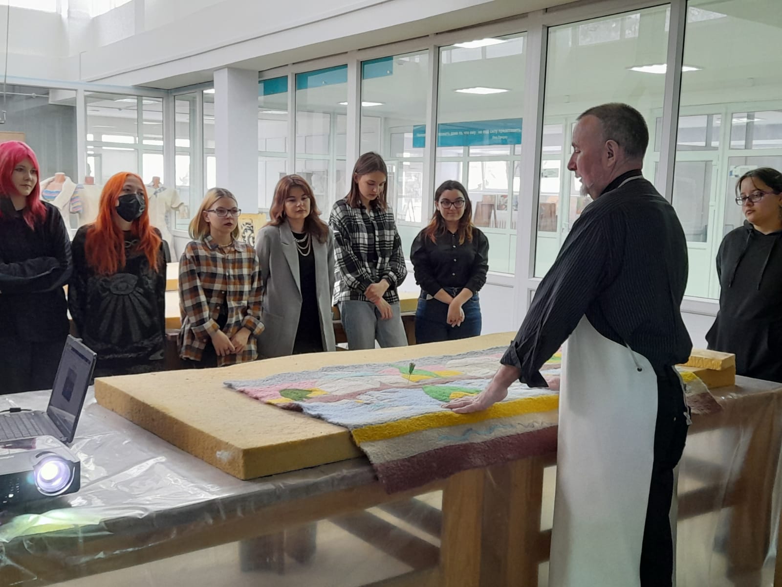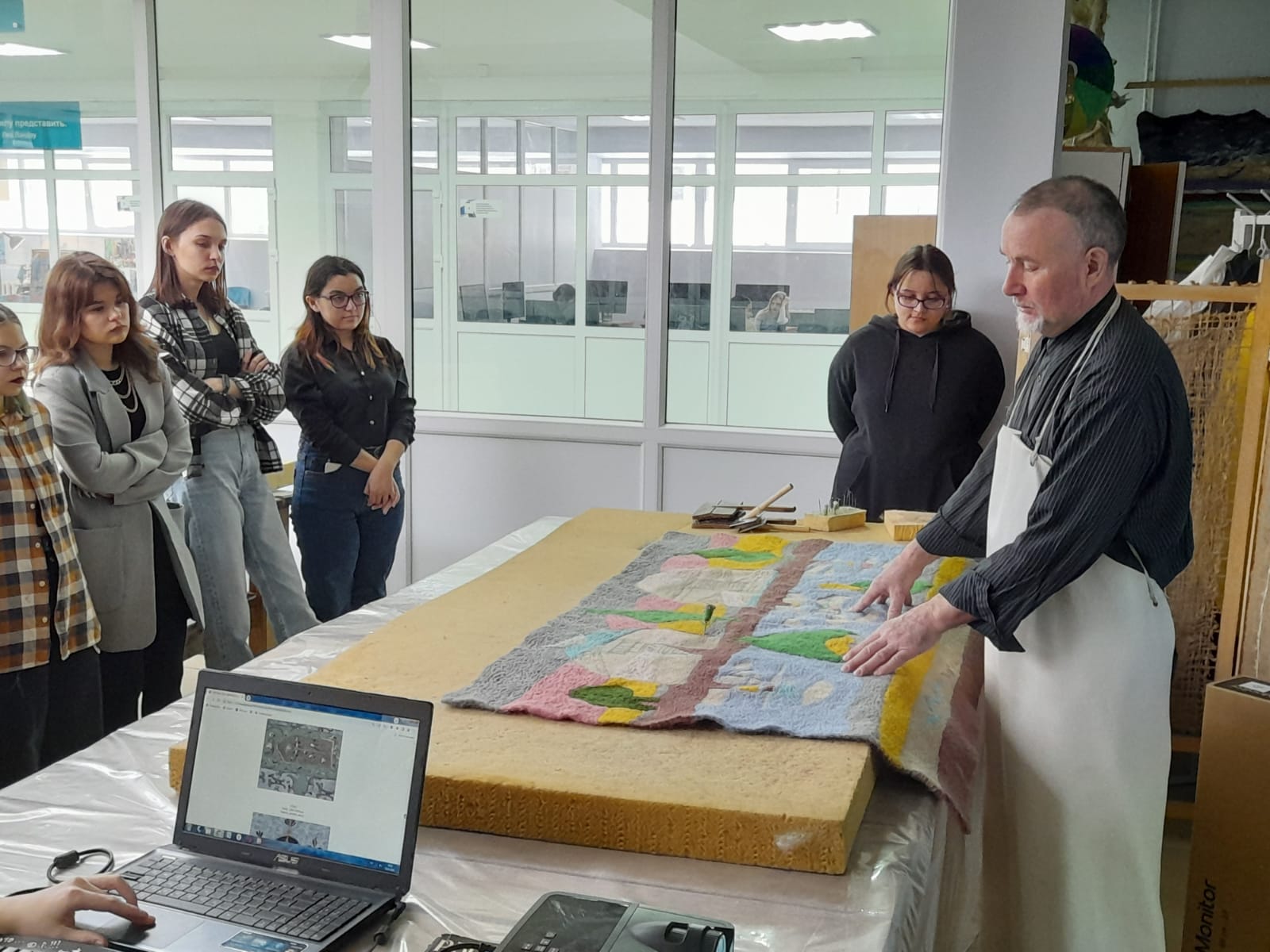 В рамках проведения декадника  прошла встреча с Талгат Хасановичем Масалимовым, профессором, членом Союза художников РБ и РФ. Талгат Хасанович рассказал о художественном войлоке, о необходимости открытия Центра войлока, с целью сохранения одного из древних видов народного творчества нашей республики, показал мастер-класс выполнения поисковых композиций для создания работ в технике войлок, студенты узнали, как можно выполнять работы в технике «сухого валяния».