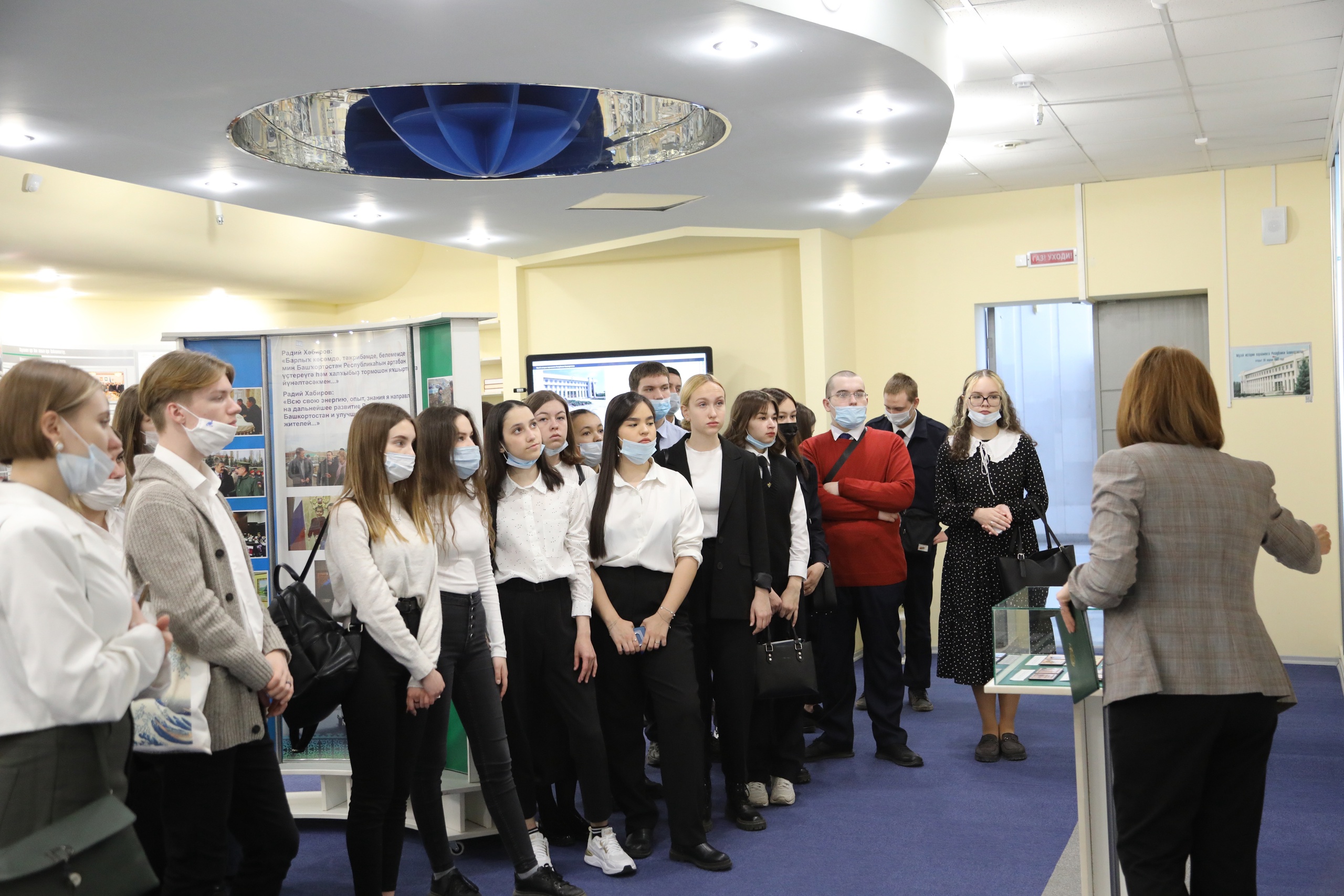 Осмотр выставки в фойе Дома Государственного Собрания, посещение залов, экскурсия по Парламентскому музею, просмотр фильма об истории парламентаризма в Республике Башкортостан;