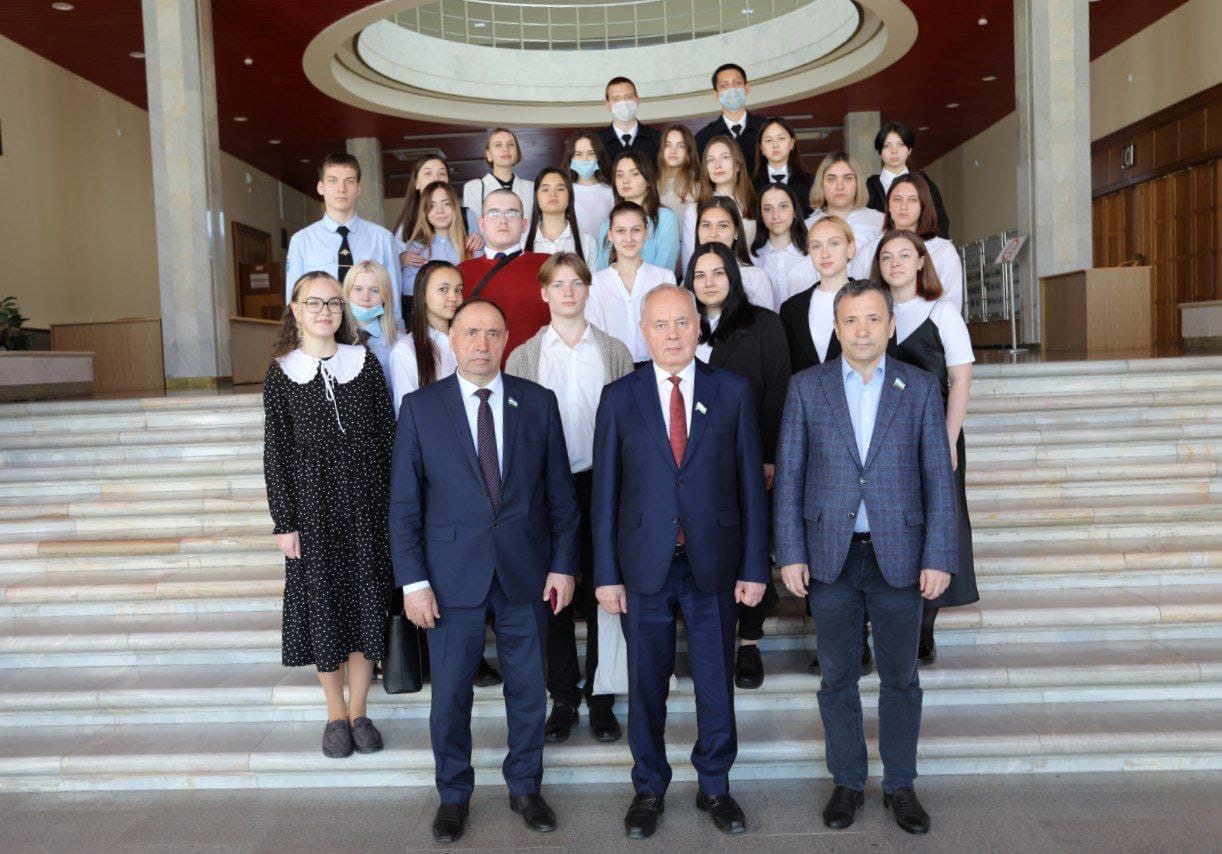 С ребятами пообщались также вице-спикер республиканского парламента Рустем Ахмадинуров и председатель Комитета Государственного Собрания по образованию, культуре, молодежной политике и спорту Раиль Асадуллин . Депутаты рассказали ребятам об основных итогах работы парламента за последнее время, о наиболее интересных законах;