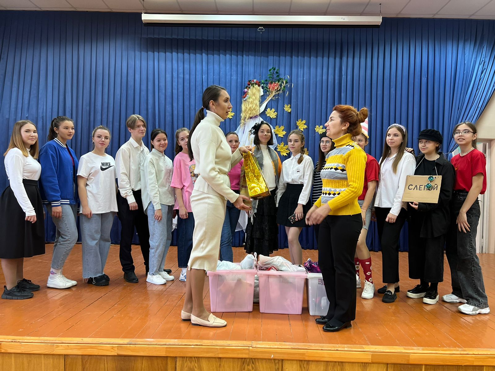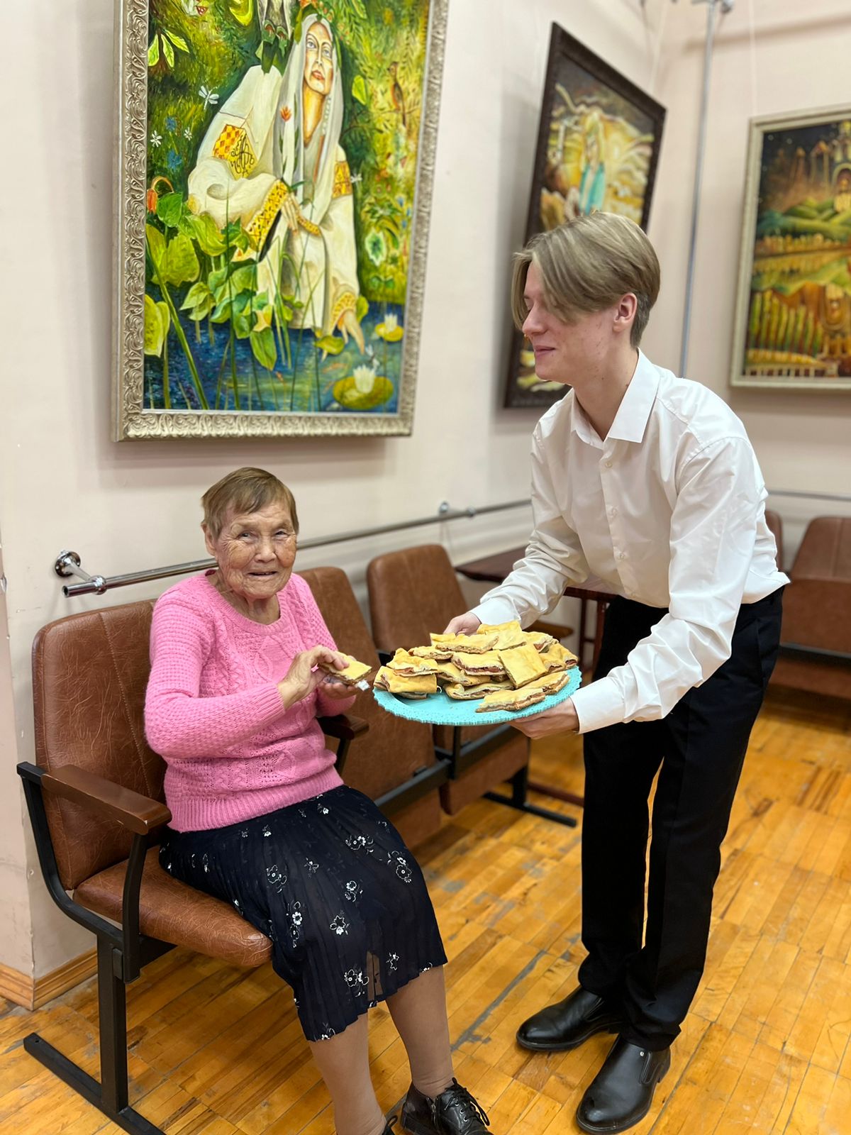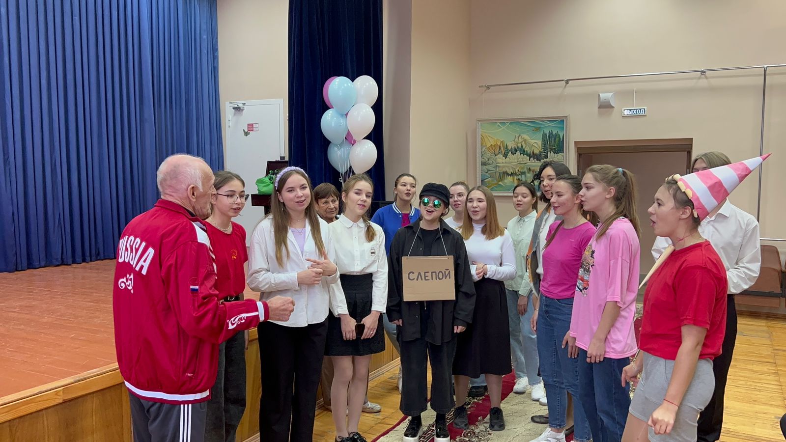 Чтобы создать праздничное настроение был организован концерт, в ходе которого студенты продемонстрировали свои творческие данные: спели песни, станцевали и показали театрализованное представление. Глаза постояльцев горели от радости. По окончанию концерта передали весь сбор центру и угостили бабушек и дедушек домашними пирогами. А после и вовсе исполнили песню по заказу дедушки.