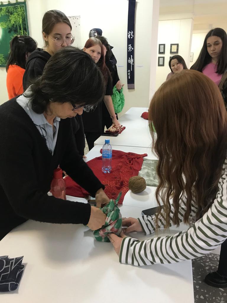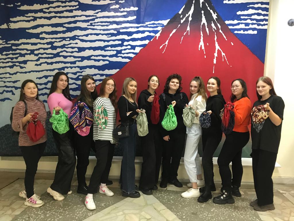 В выставочном зале «Ижад» БГХМ им. М.В. Нестеров проходит выставка «Путь к Фудзи», представляющая  собрание редких артефактов японского искусства из частных коллекций и произведения современных уральских мастеров. В рамках этой выставки прошёл мастер-класс «Сумочка – узелок из платка фуросики. Сотрудник музея, Мустафина Гузель Раисовна провела экскурсию по этой удивительной выставке, рассказала об истории японской керамики и показала  нашим  детям (гр. 9ПСО-11,преподаватель Крыжановская),  как  из простого платка можно сделать удобную котомку- фуросики.