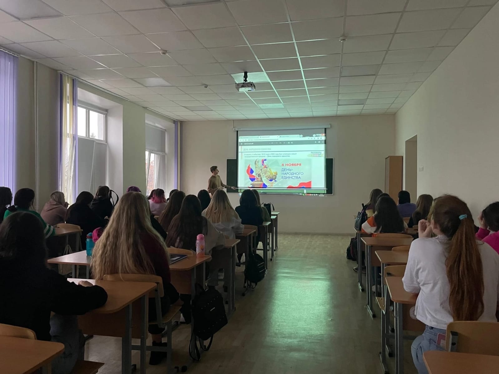 В целом, кураторскими часами, посвящённых «МЫ ЕДИНЫ, МЫ – ОДНА СТРАНА!» было охвачено 75 учебных групп – 1500 человек, 500 человек из которых, являются первокурсниками.
