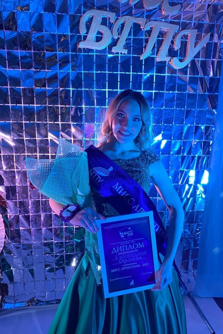 Екатерина Сергеева достойно представила себя на финале конкурса «Мисс БГПУ им. М.Акмуллы - 2022». Ее грациозные дефиле и творческие номера оставили в сердцах жюри большое впечатление. Решением судей наша финалистка стала победителем в номинации «Мисс артистизм»