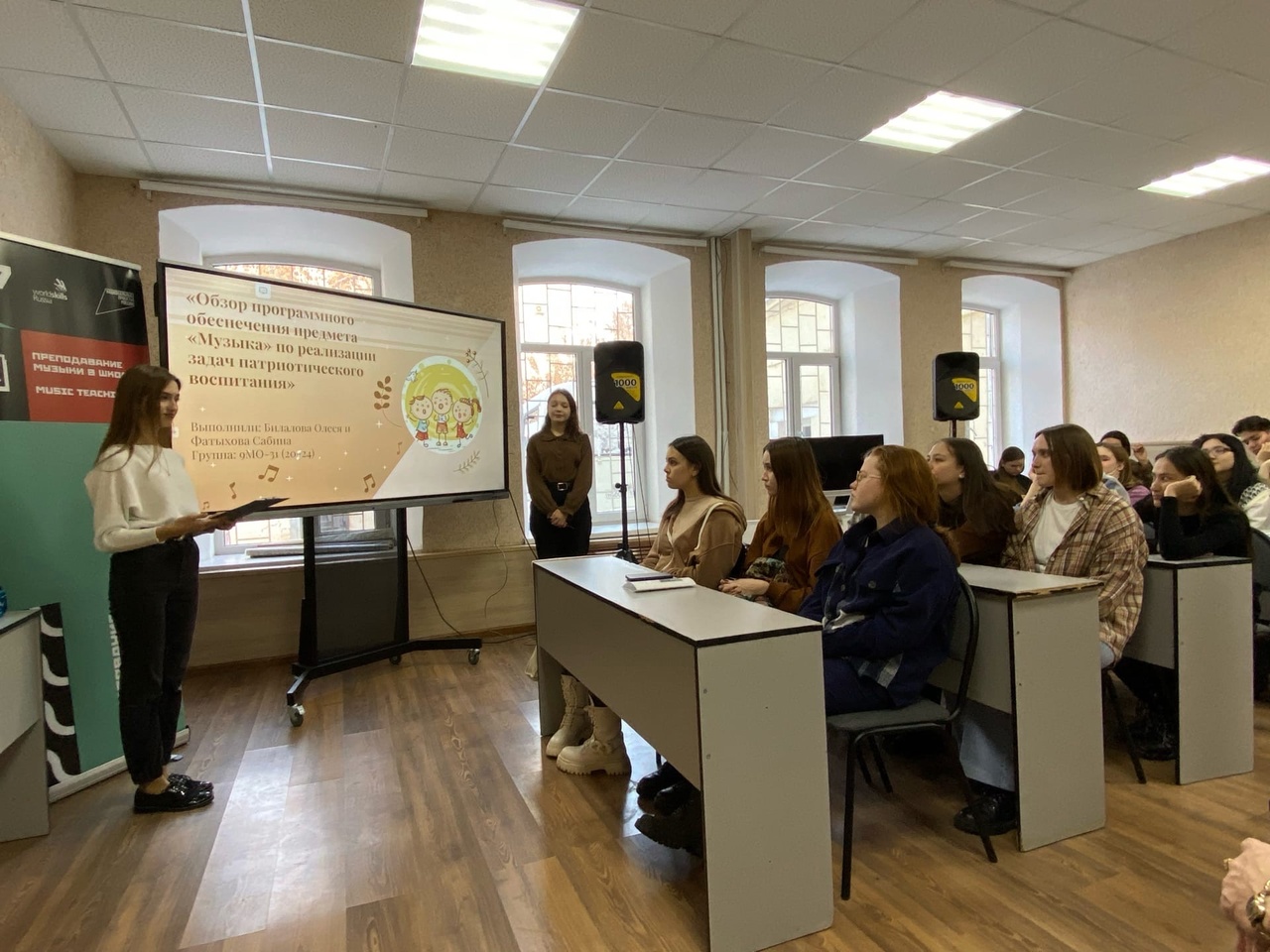 Особый внимание вызвали выступления студентов, работающих по специальности в качестве музыкального руководителя и учителя музыки, которые изучили опыт работы на уроках музыки и музыкальных занятиях в детском саду, а также поделились своим опытом работы по этому направлению.