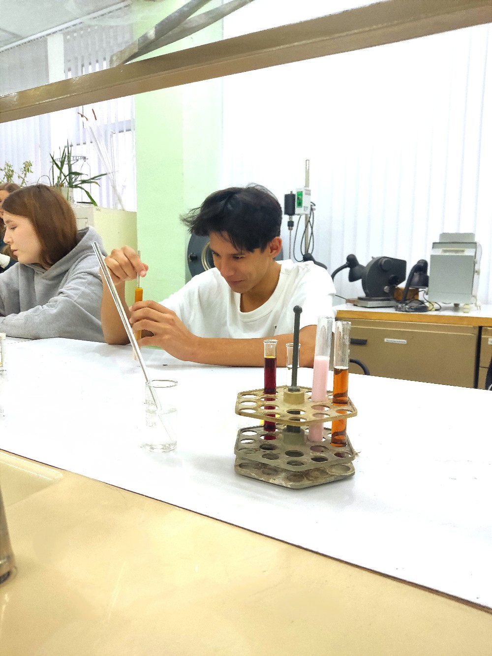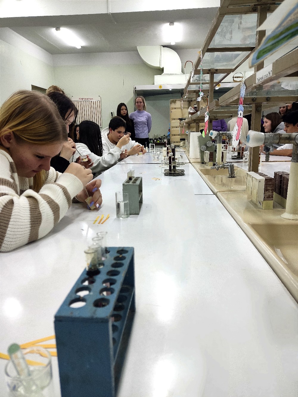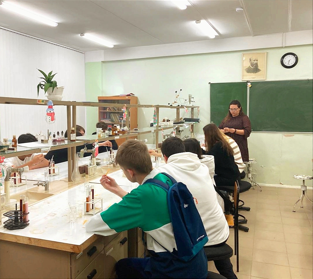 Ребята узнали о специальностях которые можно освоить на базе нашего колледжа в частности о специальности "Техник-эколог". Также был организован мастер класс «Испытательная лаборатория» по определению крахмала продуктах питания и определение рН среды в газированных напитках.