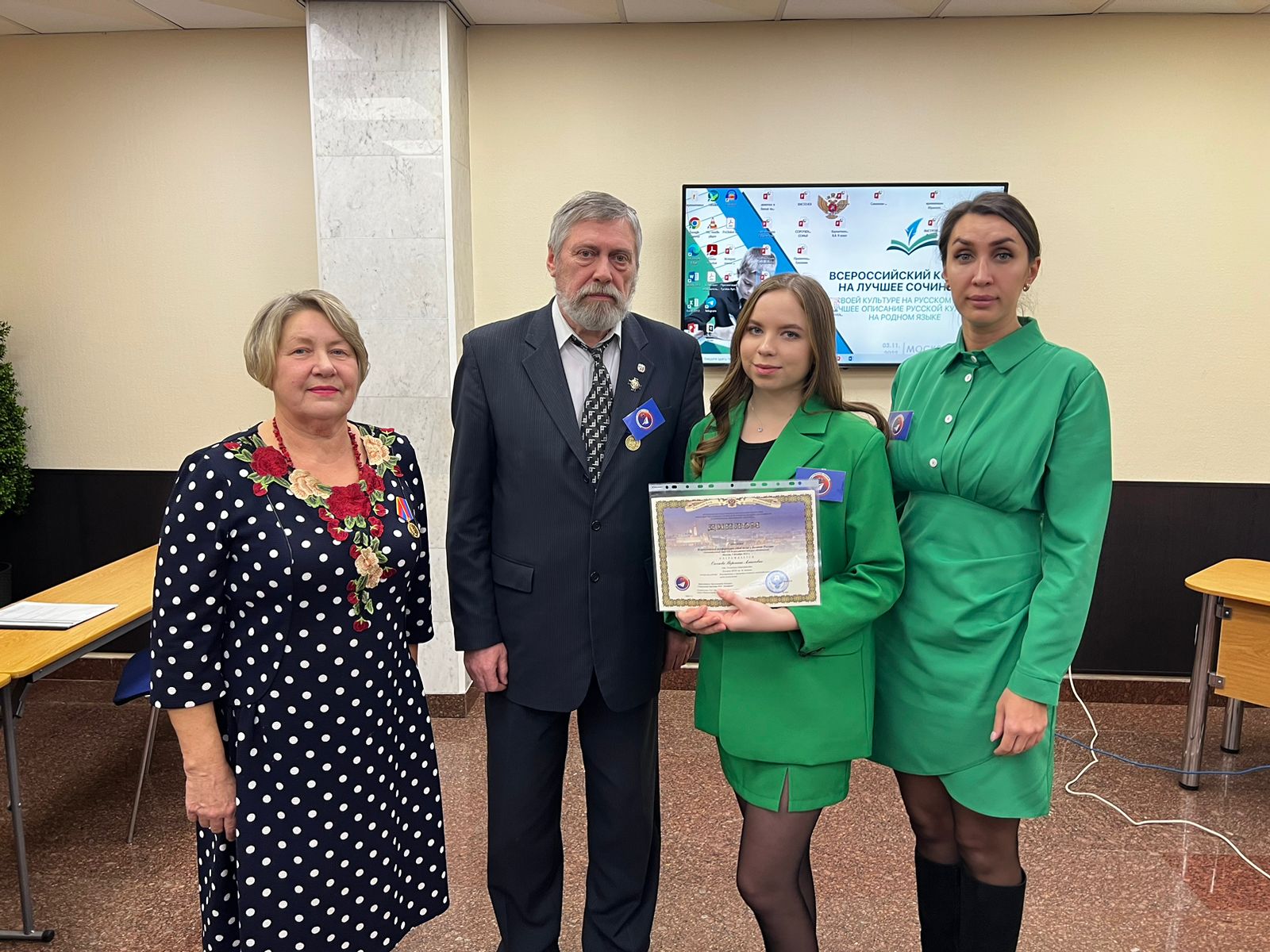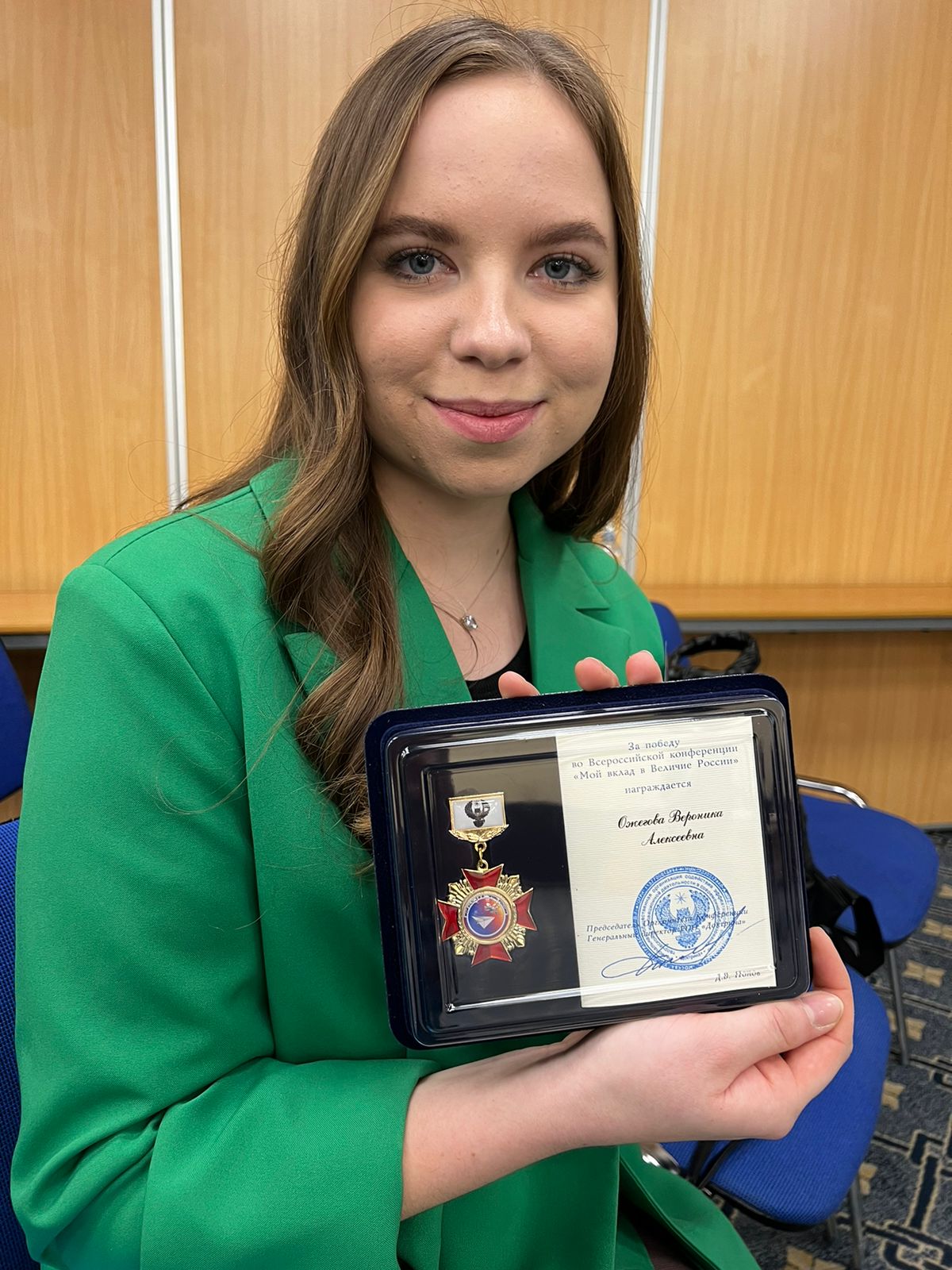 З декабря в г. Москва состоялась Всероссийская конференция «МОЙ ВКЛАД В ВЕЛИЧИЕ РОССИИ» победителей заочного - отборочного этапа Конкурса и научных руководителей конкурсных работ, в котором приняли участие студентка группы 9ПНК-41 Ожегова Вероника и преподаватель Кинцель Валентина Николаевна.